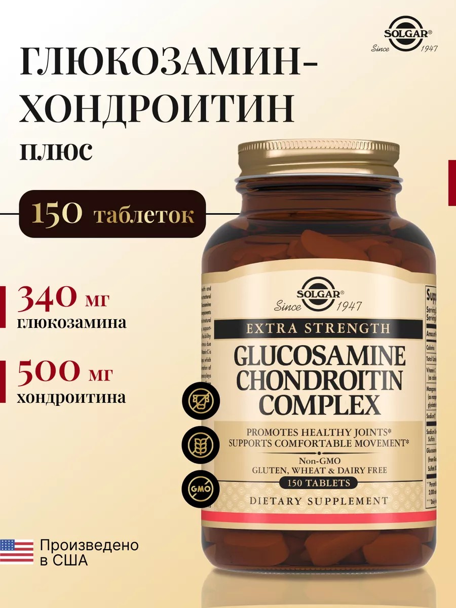 Солгар, Глюкозамин-Хондроитин плюс, 150 шт