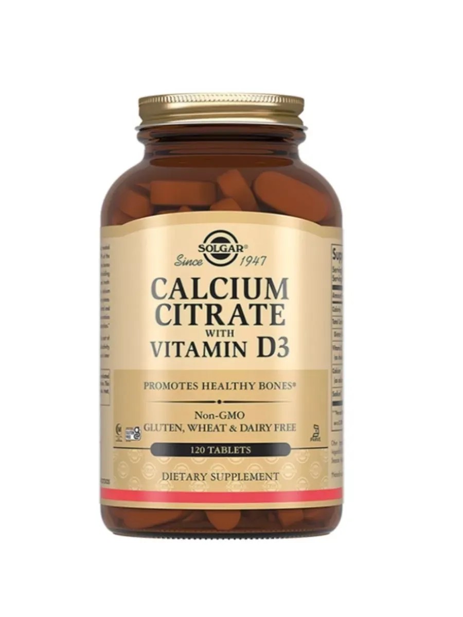 Солгар Цитрат кальция с витамином D3 - это биологически активная добавка (БАД) к пище - высококачественный продукт, который содержит два основных компонента для здоровья костей - кальций и витамин D3. Кальций - это минерал, который играет важную роль во многих функциях организма, включая формирование и поддержание костной ткани. Кальций способствует предотвращению остеопороза, характеризующегося снижением плотности и прочности костей, участвует в процессе свертывания крови и поддержании сердечной деятельности, передаче нервных импульсов. Витамин Д3, представленный в виде холекальциферола, способствует усвоению кальция костной тканью. Цитрат кальция, в отличие от карбоната кальция, усваивается в организме даже при пониженной кислотности желудка. Этот продукт содержит 120 таблеток в упаковке, каждая таблетка имеет массу 1602 мг. Перед применением рекомендуется проконсультироваться с врачом.