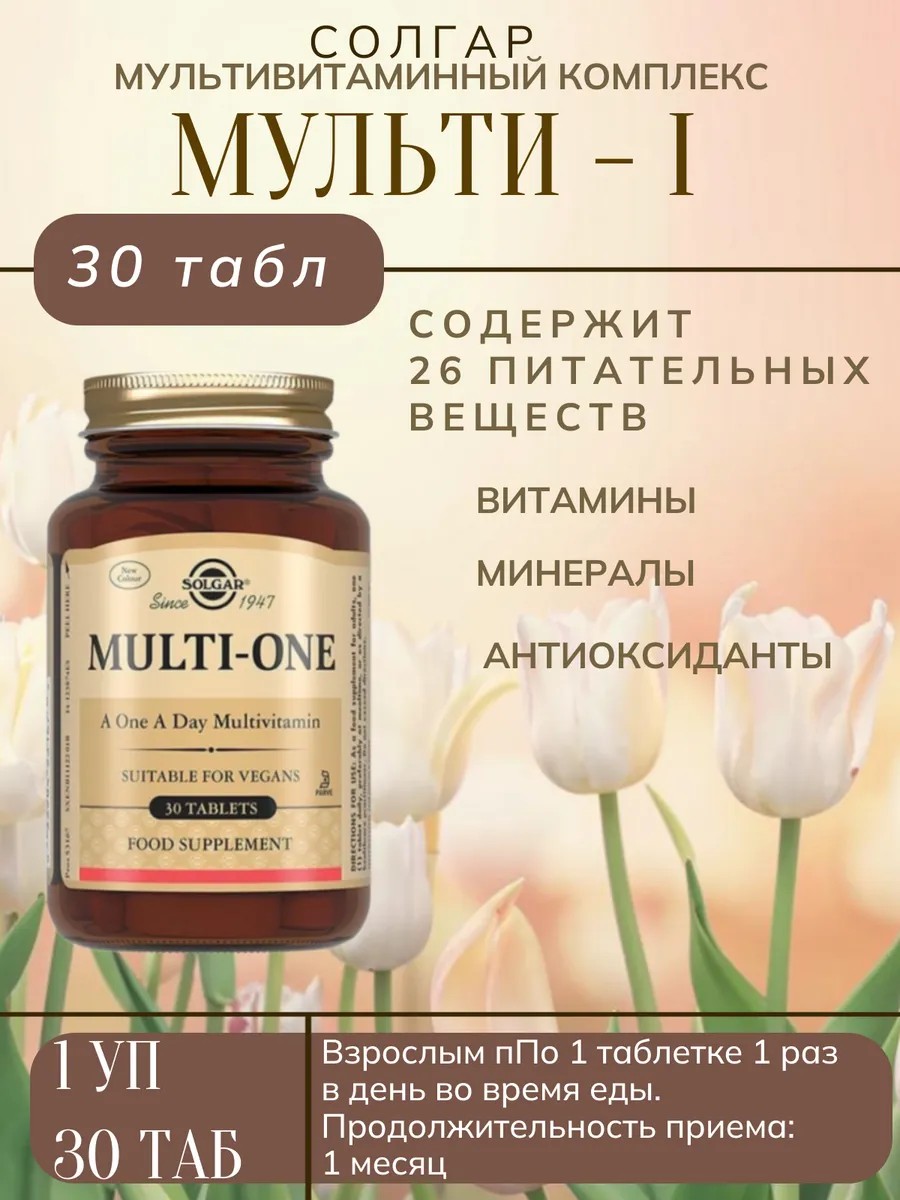 Солгар мульти - I - это комплекс витаминов, созданный для поддержания здоровья организма в целом. Каждая упаковка содержит 30 таблеток, которые содержат сбалансированный витаминно-минеральный комплекс в легко усваиваемой форме. Продукт не содержит искусственных красителей, ароматизаторов и консервантов, что делает его безопасным для употребления. Рекомендуется для людей, которые страдают от дефицита витаминов, а также для тех, кто желает улучшить свое здоровье и иммунитет.