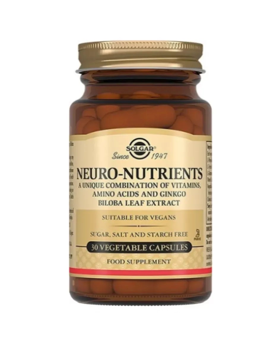 Solgar Neuronutrients is a dietary supplement containing a complex of vitamins and amino acids with Ginkgo Biloba leaf extract that helps improve brain function, enhance concentration and memory, and reduce anxiety, irritability, and fatigue.