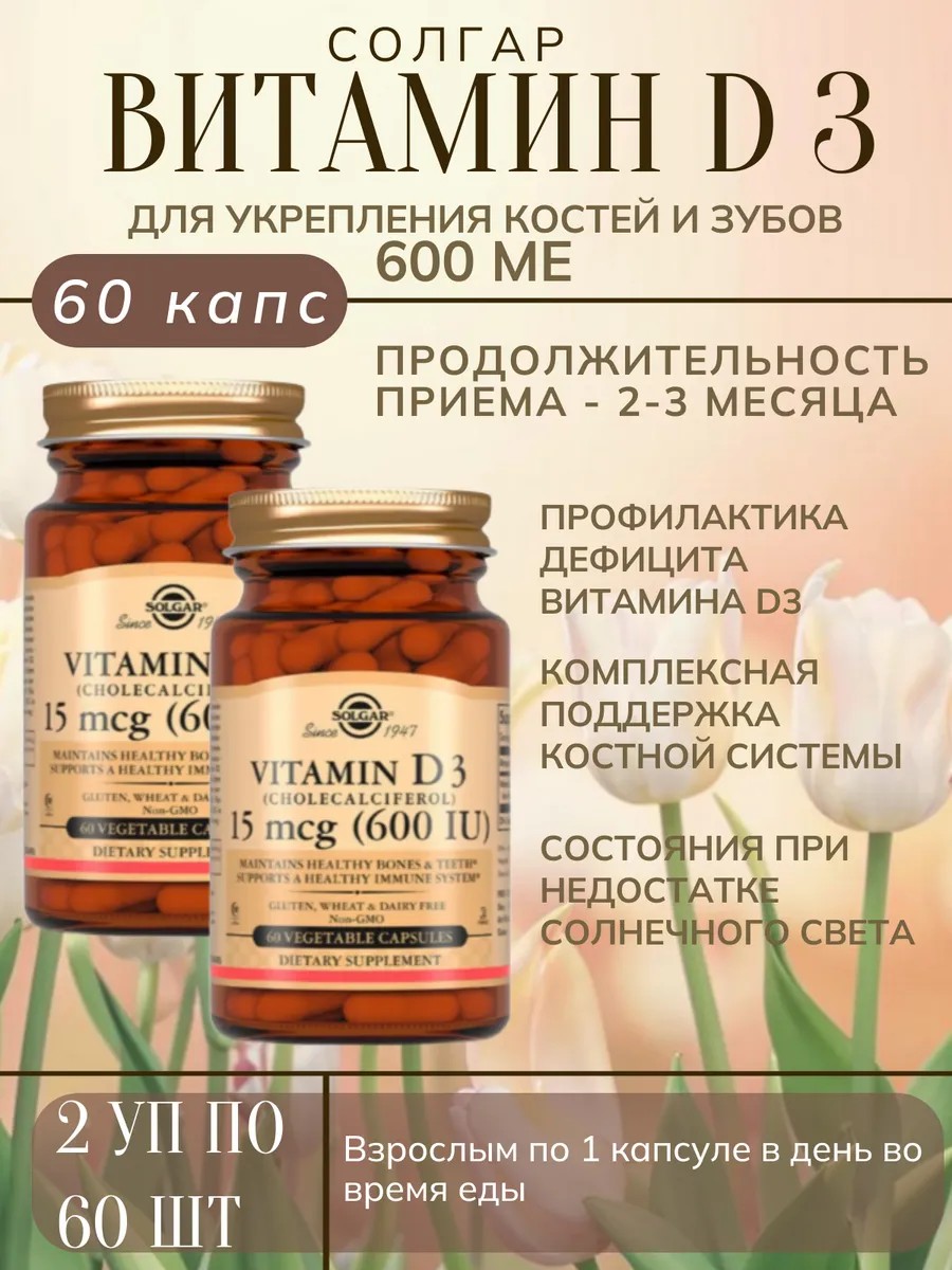 Solgar Inc. Витамин D3 600МЕ 60 капсул-2уп