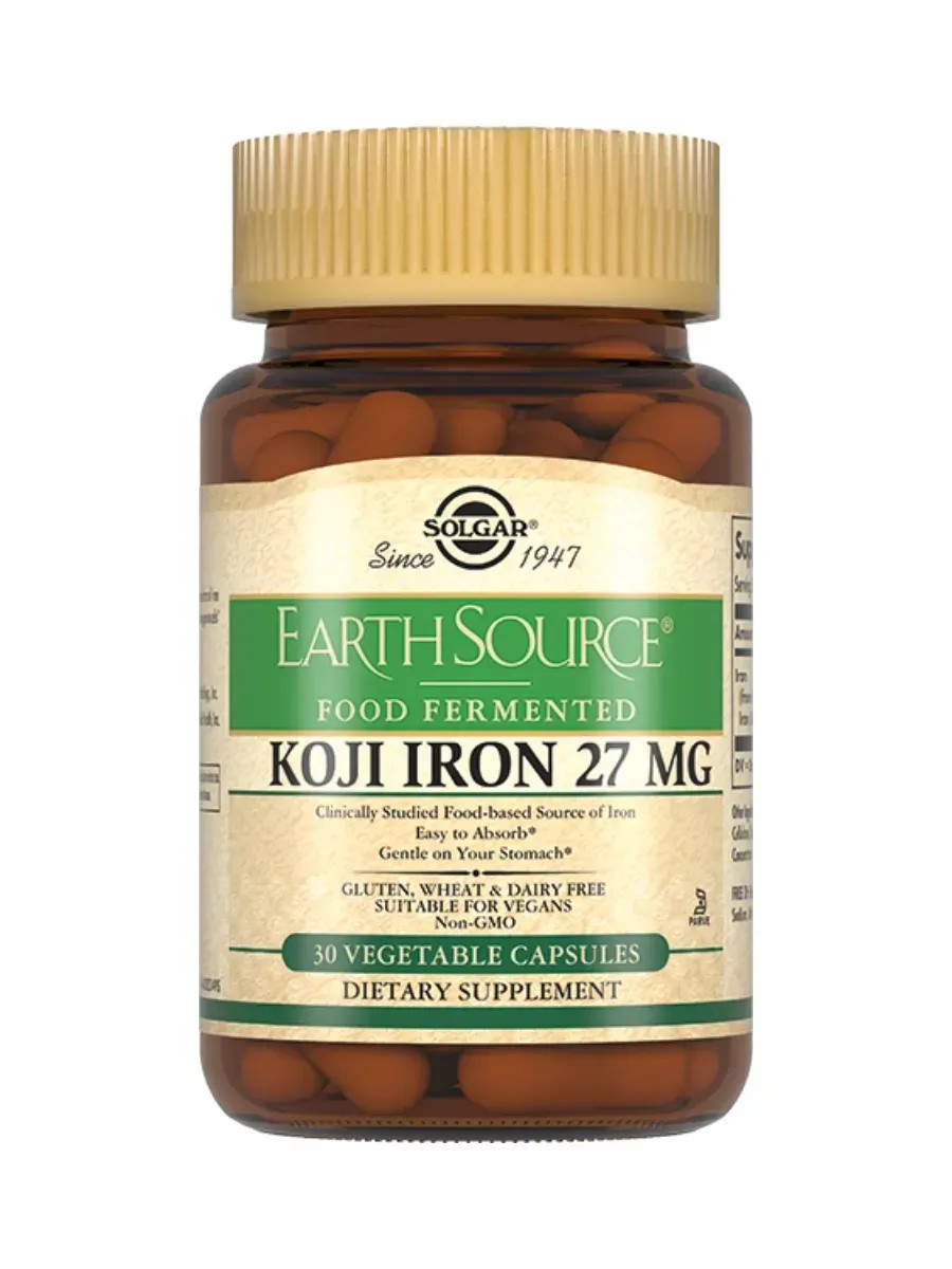 Koji Iron 27 mg Vegetable Capsules is a Solgar innovation, a highly bioavailable, sustained-release form of iron.