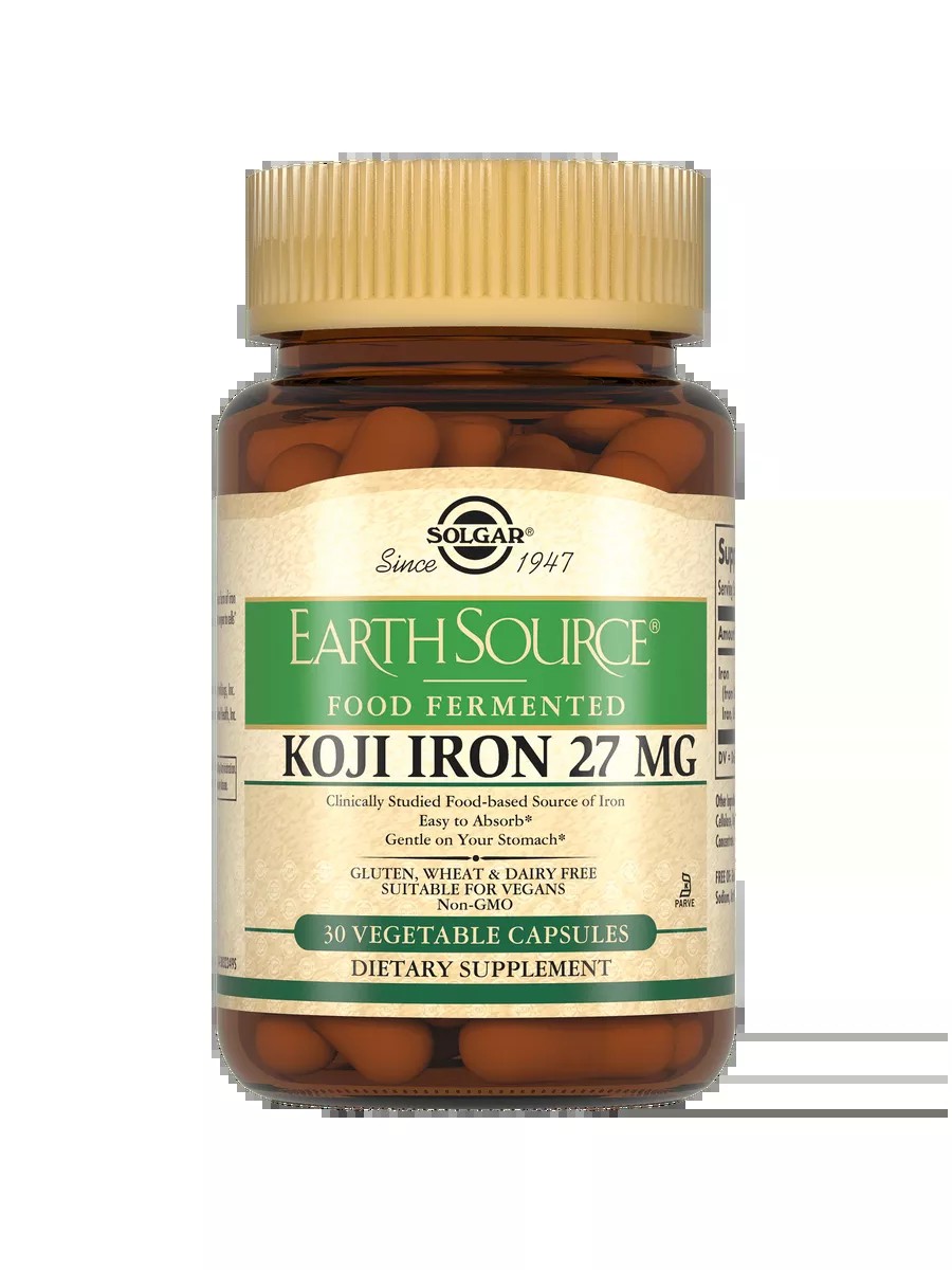 Iron 27 mg in Koji fermented culture is a Solgar innovation, a highly bioavailable, sustained-release form of iron.