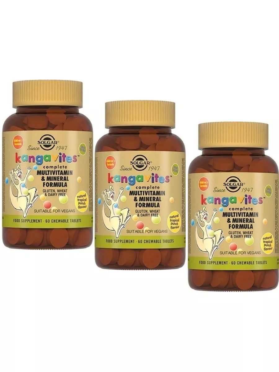 Комплексная формула мультивитаминов и минералов со вкусом тропических фруктов (Kangavites Complete Multivitamin & Mineral Formula Chewable Tablets) - это мультивитаминный комплекс состоящий из минералов и витамин для детей в возрасте от 3 лет и старше.