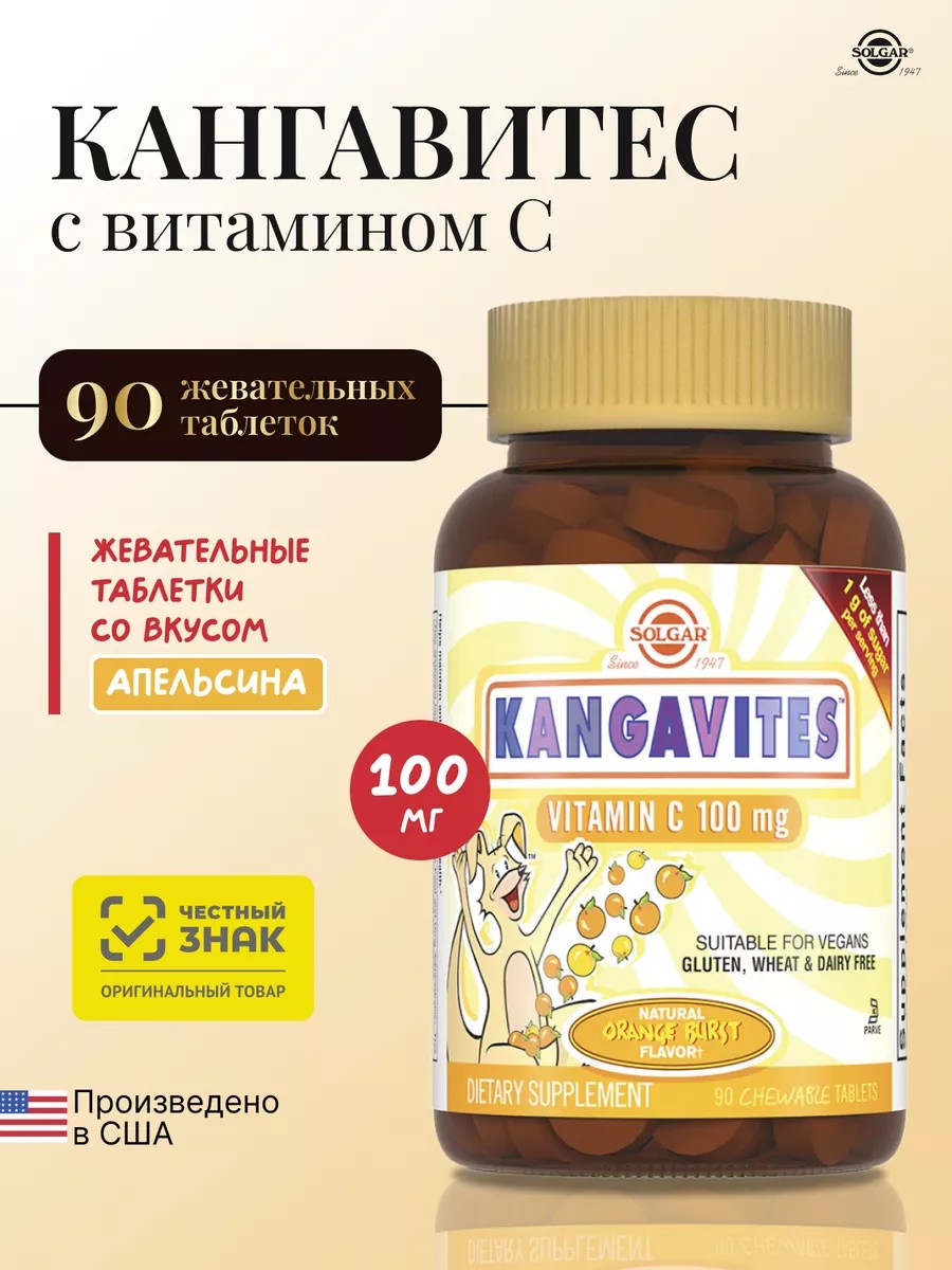 Витамин С помогает повысить иммунитет и сопротивляемость детского организма к инфекциям. Поэтому дополнительный прием витамина С особенно важен во время осенне-зимних периодов простуды, а также тем детям, которые часто болеют. Детский Кангавитес с витамином С 100 мг со вкусом апельсина производится исключительно из тщательно отобранных натуральных компонентов без добавления синтетических консервантов, красителей и потенциальных аллергенов. Кангавитес с витамином С 100 мг со вкусом апельсина выпускается в виде жевательных таблеток, обладающих приятным апельсиновым вкусом.