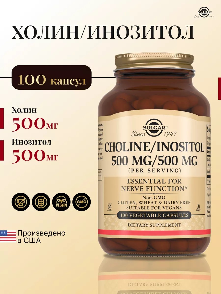 SOLGAR Солгар Холин 500 мг / Инозитол 500 мг, 100 капсул