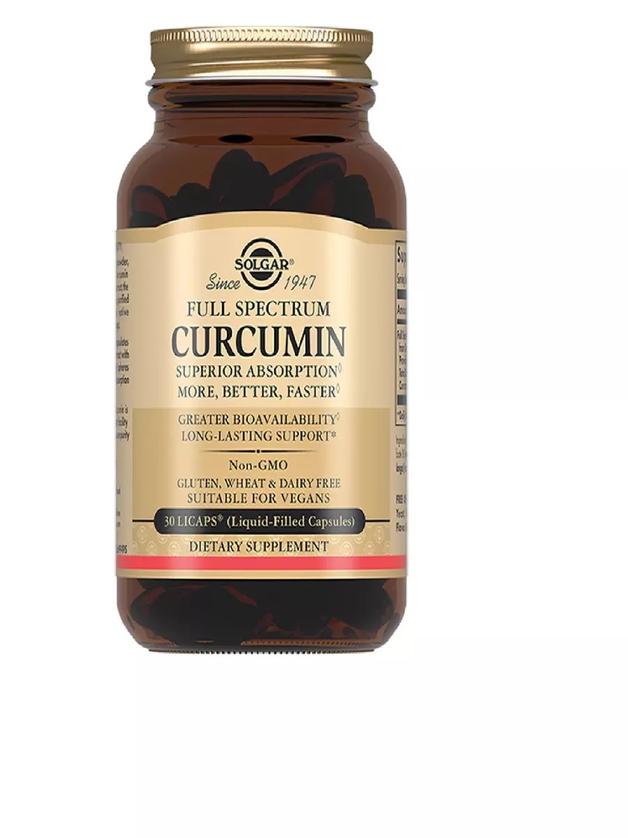 Капсулы «Куркумин» (Full Spectrum Curcumin Capsules) - сбалансированный состав Натуральное сырье корня куркумы (Куркума длинная). В 185 раз больше степень биодоступности по сравнению с порошком Куркумы. В 6,8 раз выше скорость всасывания по сравнению с порошком Куркумы. Все это благодаря использованию инновационной технологии NovaSOL, которая позволяет перевести жирорастворимое вещество в водорастворимые легкоусвояемые мицеллы. Мицеллы малого размера (30 нм) устойчивы в кислой среде желудка. Мощный антиоксидант, снижает воспаление, обеспечивает поддержку иммунной системы. Куркумин благоприятно влияет на работу всего организма, в том числе способствует здоровой работе суставов, улучшению их подвижности и гибкости, а также снижению скованности мышц и лучшему их восстановлению при физических нагрузках. Помогает защитить сердце, оказывая положительное влияние на функцию сердечно-сосудистой стенки. Способствует стимулированию иммунитета, повышая сопротивляемость организма к инфекциям. Не содержит глютена, пшеницы, молочных продуктов, без ГМОБез консервантов. Подходит для вегетарианцев.