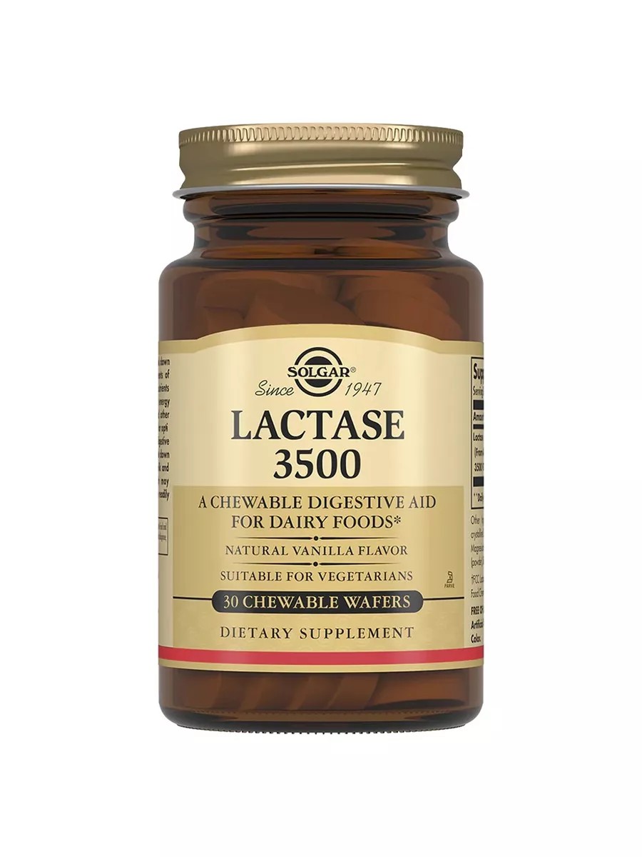 Жевательные таблетки «Лактаза 3500» рекомендуются в качестве источника фермента лактазы.