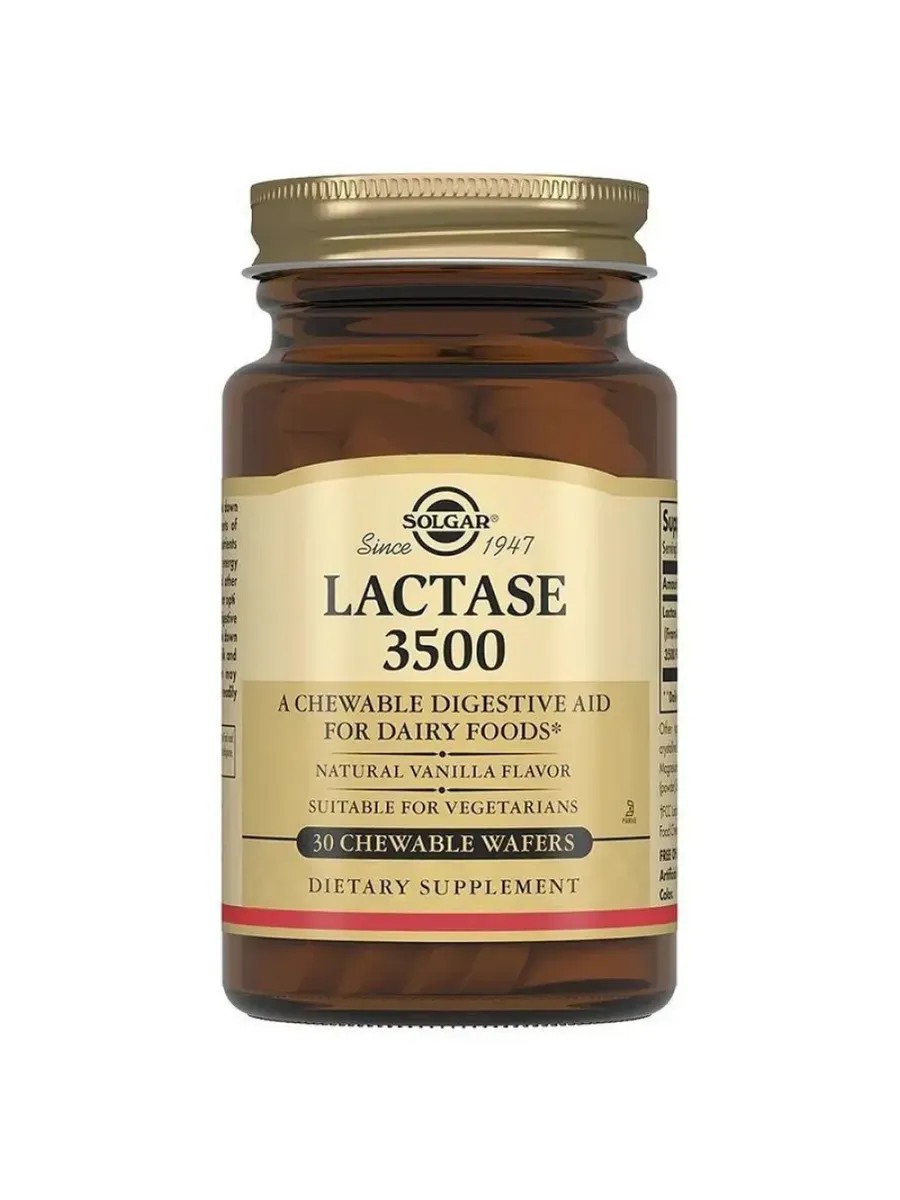 Жевательные таблетки «Лактаза 3500» рекомендуются в качестве источника фермента лактазы. Дополнительный прием продукта «Лактаза 3500» способствует расщеплению лактозы (молочного сахара), помогая снизить симптомы лактазной недостаточности (нарушения стула, спазмы и боли в животе, избыточное газообразование) при приеме молочных продуктов и нормализуя пищеварение. Жевательные таблетки обладают приятным вкусом и ароматом натуральной ванили. Лактоза — это молочный сахар, составляющий около 99% всех углеводов молока. Расщепление лактозы происходит в кишечнике под воздействием фермента лактазы. При снижении активности лактазы развивается лактазная недостаточность. Источником лактазы являются грибы Aspergillus oryzae.