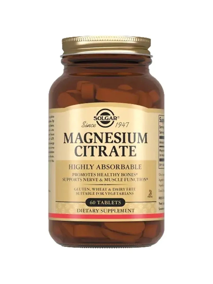Solgar Magnesium Citrate is a high-quality product containing magnesium in citrate form, which ensures better absorption. Magnesium plays a vital role in maintaining cardiovascular, nervous, and muscular health, as well as in metabolism and immune function. Magnesium also improves sleep and helps manage stress. Solgar Magnesium Citrate contains 60 tablets for easy administration and dosage. It is free of gluten, xenobiotics, GMOs, and artificial colors, making it safe for consumption.