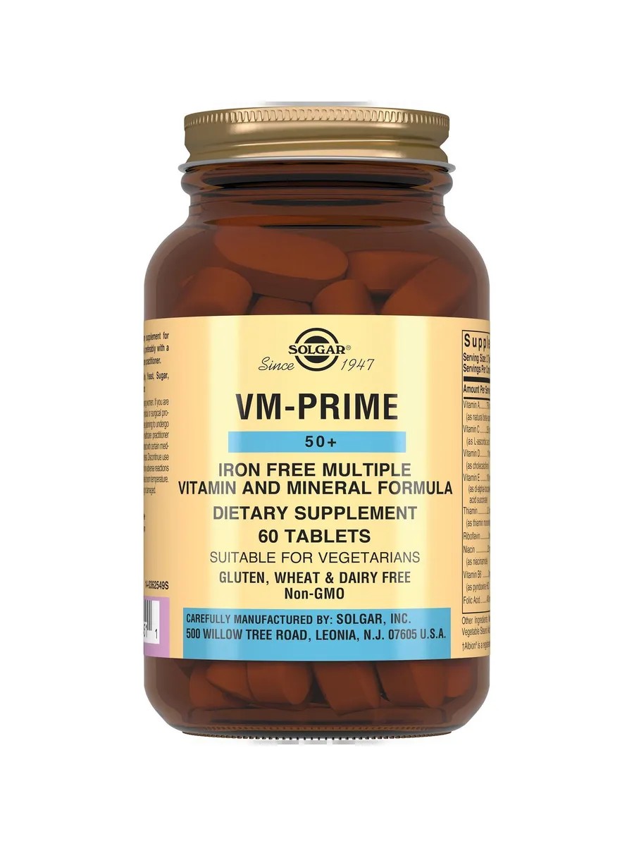 Solgar VM-PRIME is a formula designed to provide resource support for adults over 50 years of age.