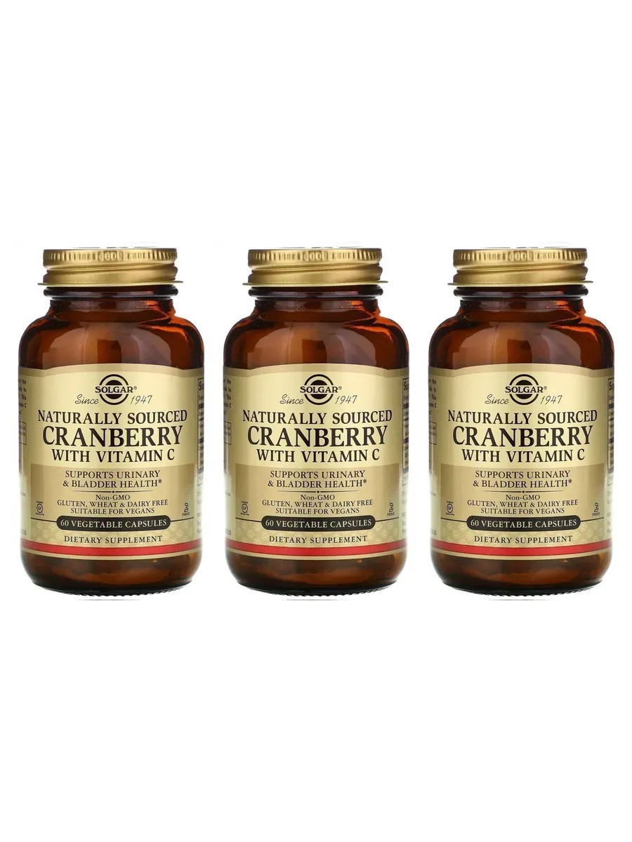 SOLGAR Natural Cranberry with Vitamin C 60 capsules (590 mg) x 3 l