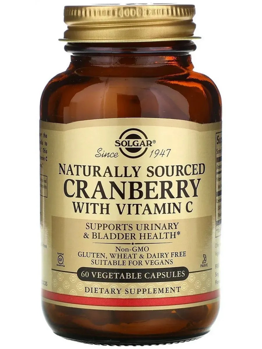 SOLGAR Natural Cranberry with Vitamin C, 60 капсул (590 мг)