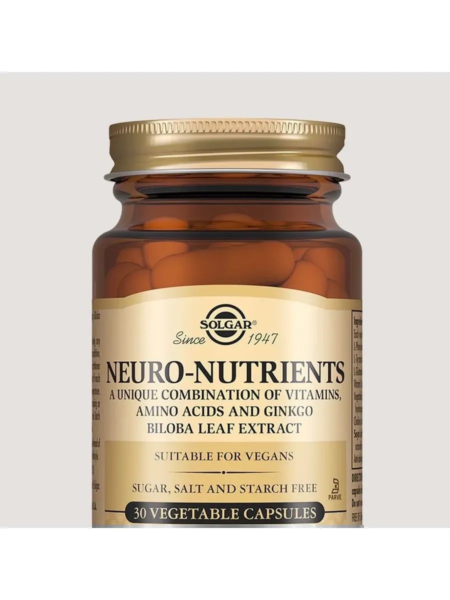 Solgar Neuronutrients is a dietary supplement, a complex of vitamins and amino acids with Ginkgo Biloba leaf extract, which helps improve brain function, enhance concentration and memory, and reduce anxiety, irritability, and fatigue. Adults take 1 capsule daily with food. Recommended duration: 1 month. Repeat treatment if necessary. Consult a physician before use.