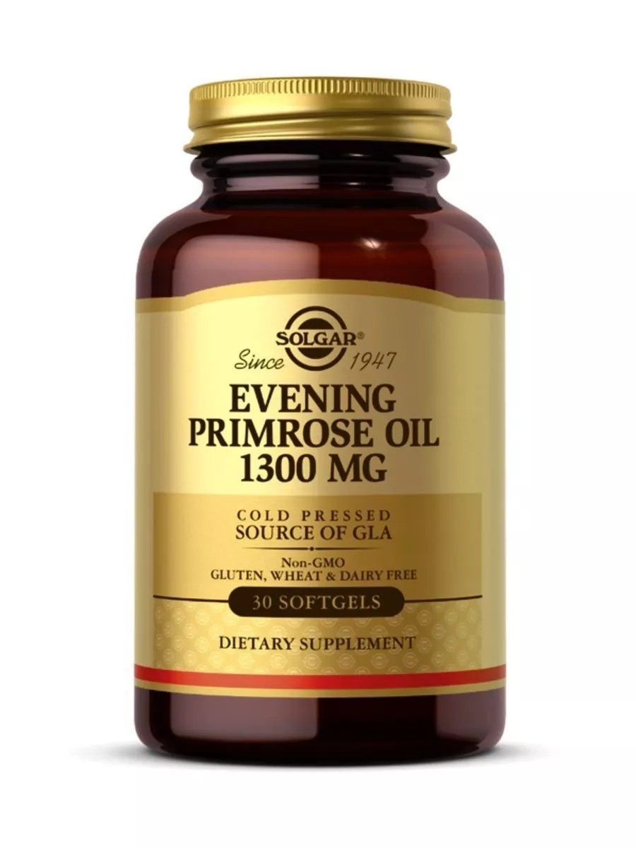 Evening Primrose Oil 1300 mg is recommended as an additional source of Omega-6 polyunsaturated fatty acids (linoleic and gamma-linolenic acids) and vitamin E. Evening Primrose Oil 1300 mg regulates estrogen levels in a woman's body, helps normalize the menstrual cycle, and eases the premenstrual period.