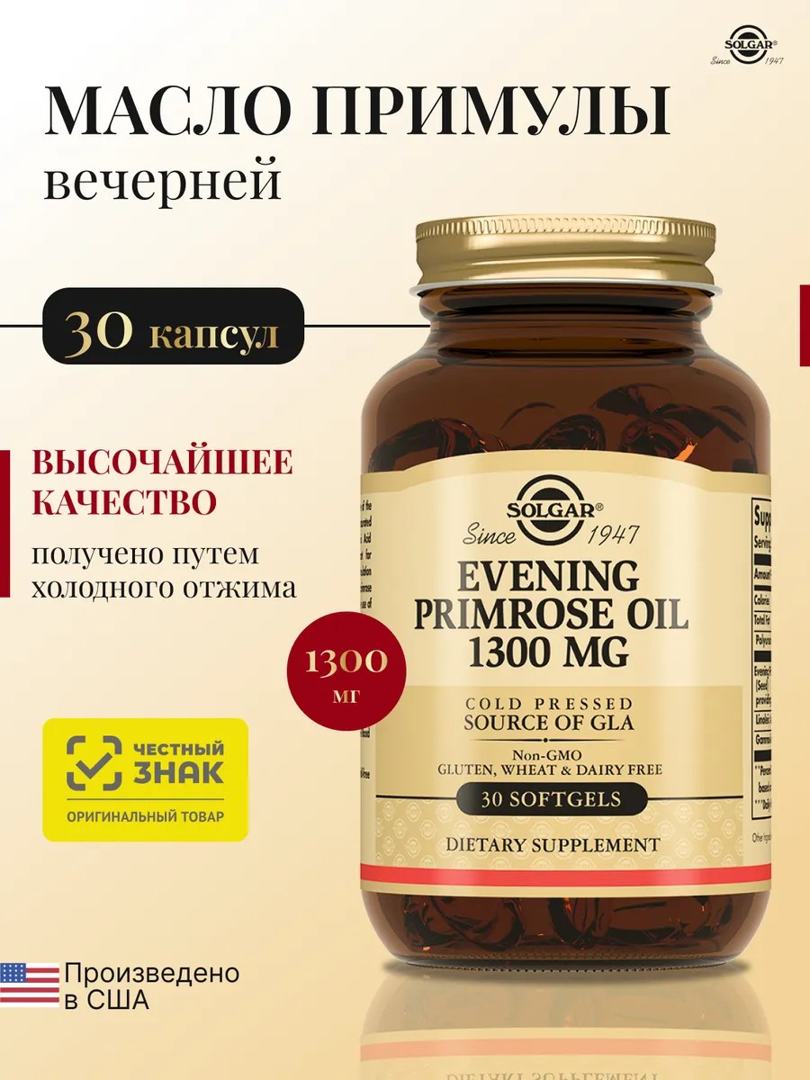 Масло семян примулы вечерней 1300 мг;