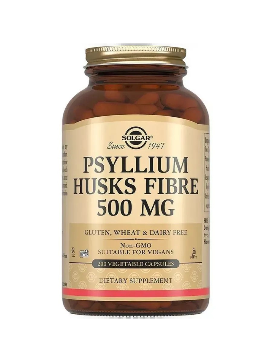 Solgar's Psyllium Dietary Fiber 500 mg is a source of plant fiber, which helps normalize digestion, relieves constipation and diarrhea, helps normalize blood sugar and cholesterol levels, and is essential for healthy intestinal microflora.