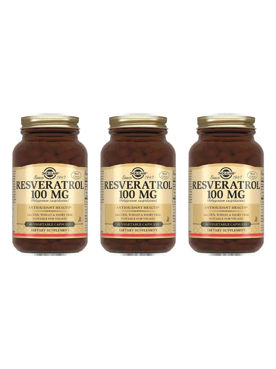 SOLGAR Resveratrol 100 Mg, 60 капсул (775 мг) х 3 уп