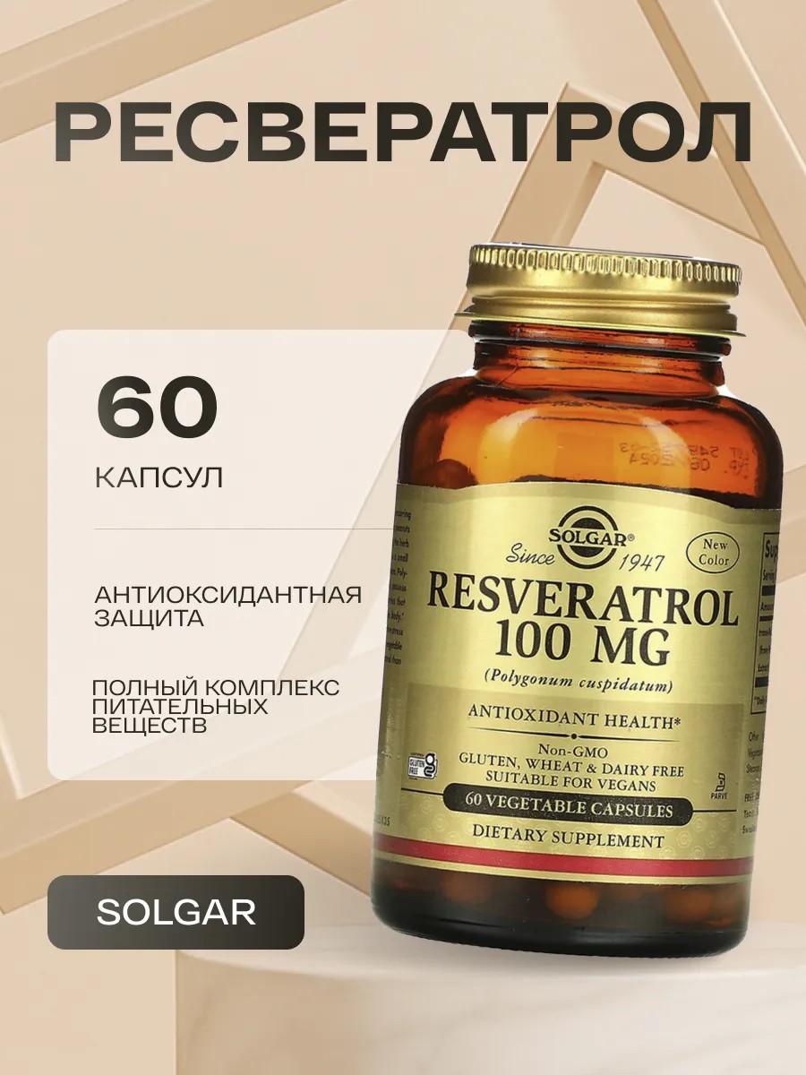 Ресвератрол от Solgar-это надежное средство для поддержания здоровья женщин и мужчин. Натуральные капсулы содержат качественные ингредиенты, которые помогают укрепить иммунитет и способствуют общему благополучию. В каждой упаковке 60 капсул, каждая из которых содержит 100 мг активного вещества, что обеспечивает безопасную дозировку для достижения максимального эффекта.