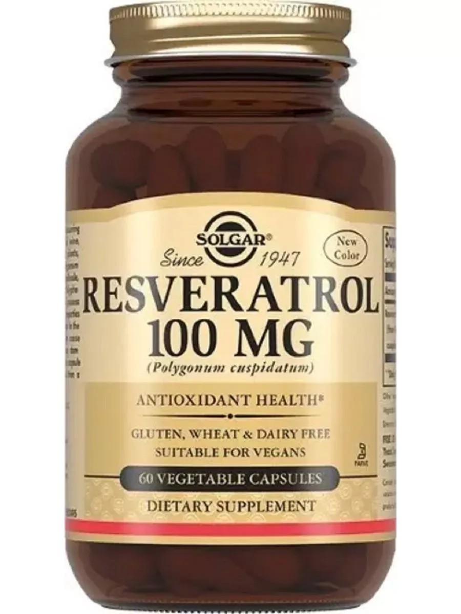 Солгар ресвератрол - биологически активная добавка (БАД) к пище. Ресвератрол обладает антиоксидантным действием, помогает предотвратить преждевременное старение организма, способствует укреплению сердечно-сосудистой системы. Производится исключительно из натуральных компонентов без добавления синтетических ингредиентов, красителей и потенциальных аллергенов.Каждая капсула содержит 100 мг ресвератрола из корня горца гребенчатого. Солгар ресвератрол рекомендуется для людей, которые хотят поддерживать здоровье сердечно-сосудистой системы, является хорошей профилактикой ряда заболеваний. Перед применением рекомендуется проконсультироваться с врачом.В качестве биологически активной добавки к пище - источника полифенольных соединений (ресвератрола)