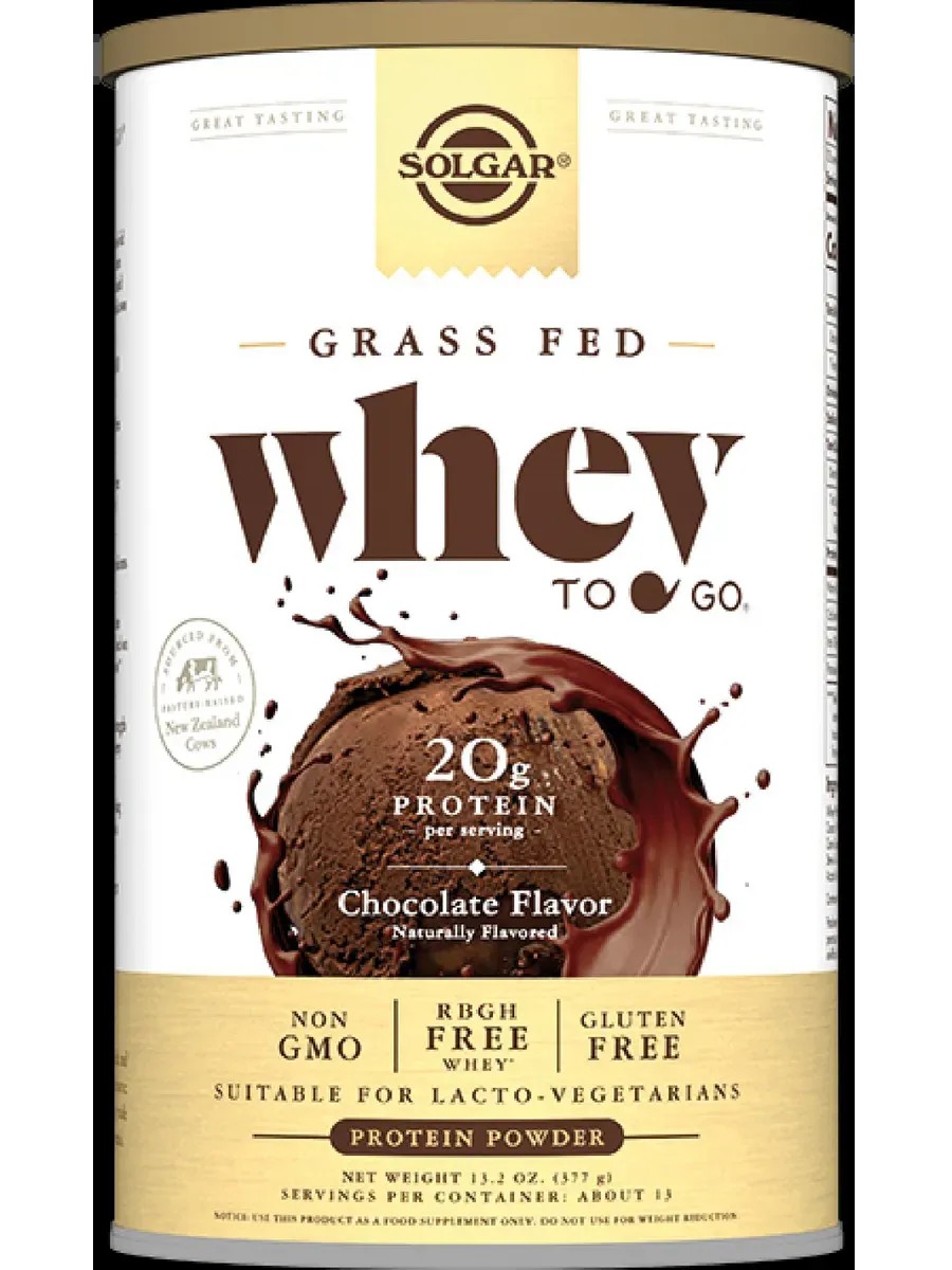 Grass Fed Whey to Go is a whey protein powder containing 20 grams of protein per scoop, derived from the milk of grass-fed cows from pastures in New Zealand.