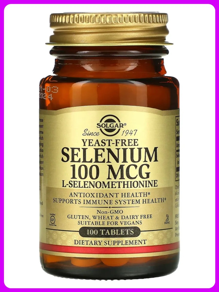 Селен — жизненно необходимый микроэлемент, который обеспечивает нормальную работу и поддерживает здоровье эндокринной, иммунной, нервной и сердечно-сосудистой систем организма, а также входит в состав важнейших ферментов — глутатионпероксидазы и йодтирониндейодиназы. Биодобавка с селеном от Solgar поможет в профилактике дефицитных состояний, повышении иммунитета, в комплексной терапии патологий щитовидной железы, неврологических и сердечно-сосудистых нарушений, замедлит процессы старения.