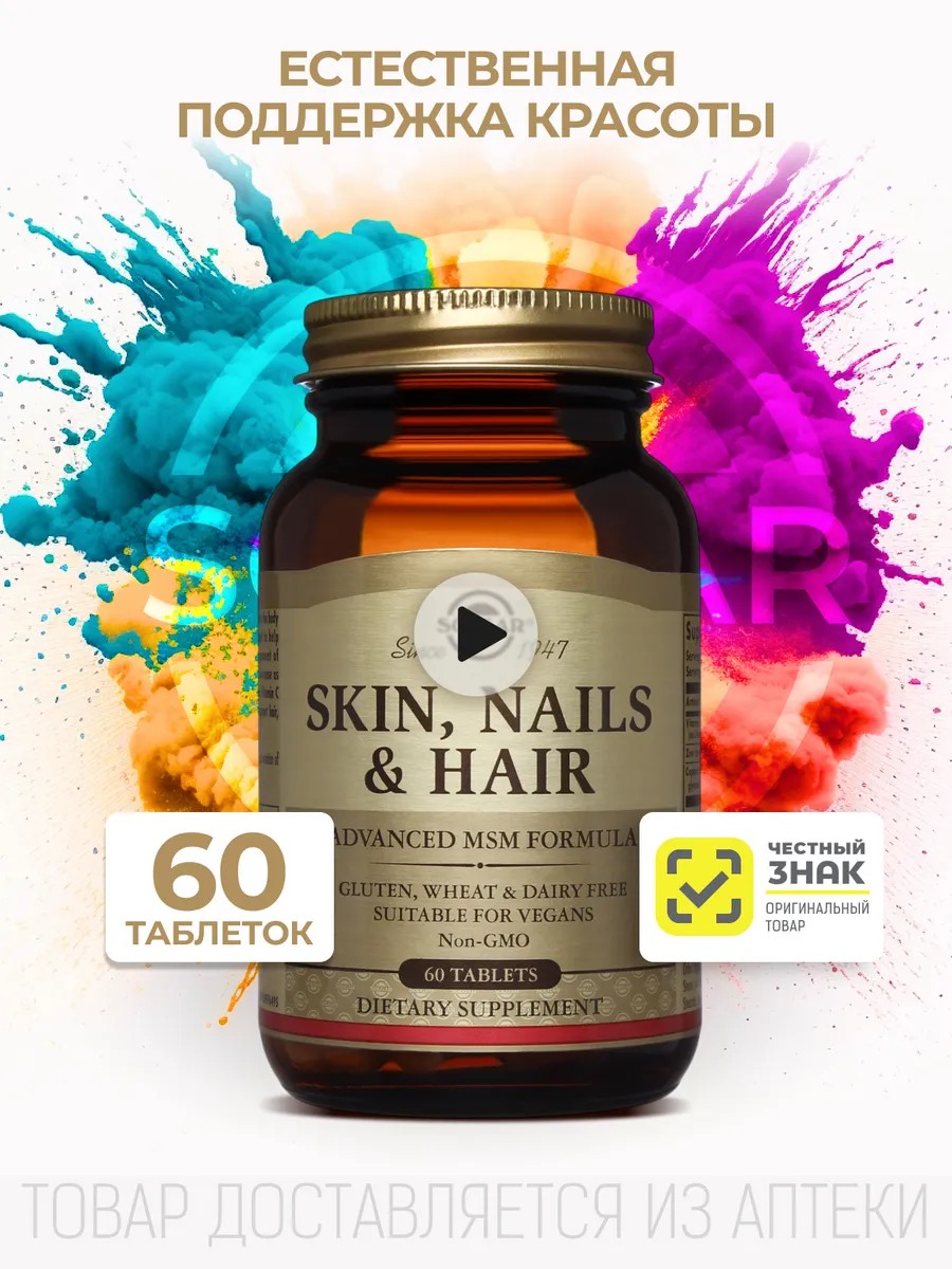 Витамины Solgar для кожи волос и ногтей - это БАД к пище, предназначенная для улучшения состояния кожи, ногтей и волос. Он содержит МСМ (метилсульфонилметан) и аминокислоты, необходимые для здоровья кожи, красоты волос и крепости ногтей. Препарат помогает укреплять ногти, снижает ломкость и выпадение волос, а также повышает эластичность и увлажнение кожи, способствуя ее здоровому и ухоженному виду.Витамины для волос от выпадения идеален для женщин, которые заботятся о своей красоте и здоровье, и желают сохранять молодость кожи и яркость волос на протяжении многих лет.