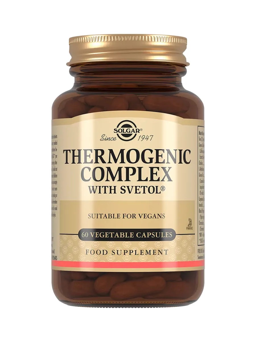 ТЕРМОГЕННЫЙ КОМПЛЕКС СО СВЕТОЛОМ (Thermogenic Complex with Svetol Vegetable Capsules) - Биологически активная добавка (БАД) к пище - данный продукт объединил в себе активные компоненты натурального происхождения, в том числе экстракт зерен зеленого кофе Svetol, экстракт листьев зеленого чая, кайенский перец, экстракт плодов черного перца (Биоперин), которые воздействуют на разные процессы контроля веса, что позволяет комплексно подойти к поддержанию стройной фигуры