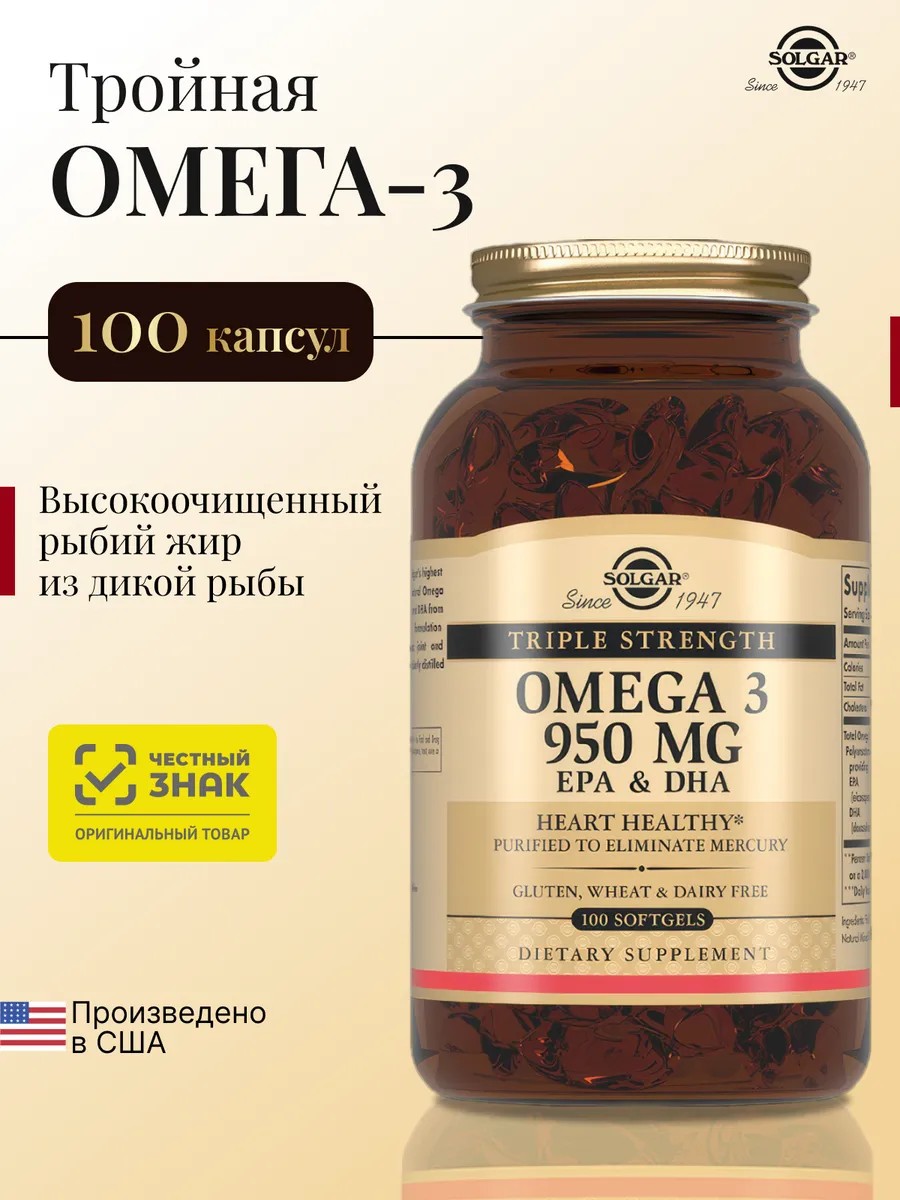 SOLGAR Тройная Омега-3, 950 мг (ЭПК и ДГК), 100 шт