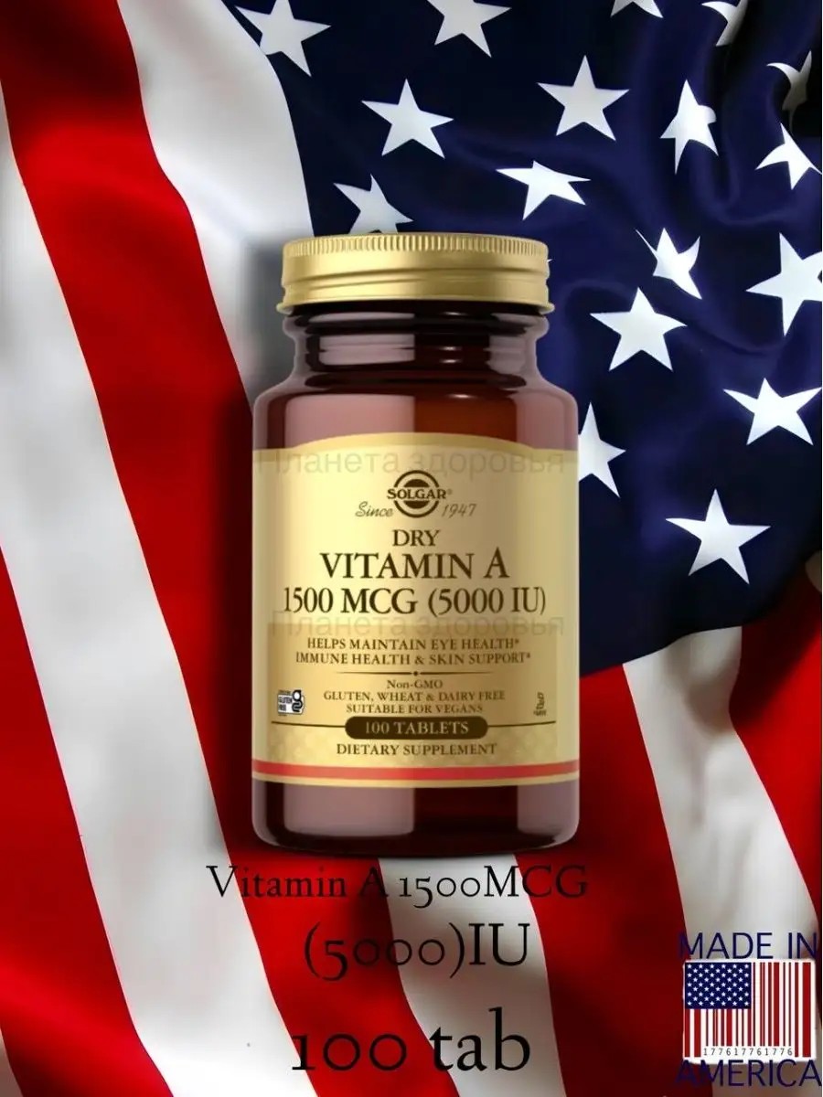 SOLGAR Солгар Витамин А 1500 мкг, 5000 МЕ, таблетки, 100 шт.