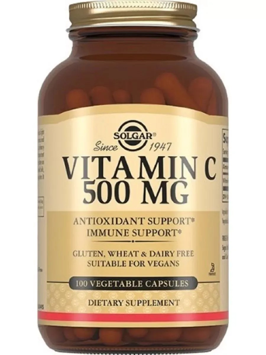 Солгар витамин C 500 мг - это биологически активная добавка (БАД) к пище в виде капсул, которая содержит высокую концентрацию витамина С. Витамин С имеет важное значение для здоровья кожи, костей, суставов, ведь он участвует в выработке коллагена, структурного белка соединительной ткани. Он участвует в метаболизме аминокислот, синтезе нейромедиаторов, способствует усвоению многих питательных веществ, таких как магний, кальций, фолиевая кислота и железо. Он помогает поддерживать здоровье сердечно-сосудистой системы. Капсулы витамин C 500 мг просты в использованииВзрослым по 1 капсуле в день во время еды. Продолжительность приема 1 месяц.Также капсулы подходят для веганов. Перед применением рекомендуется проконсультироваться с врачом.