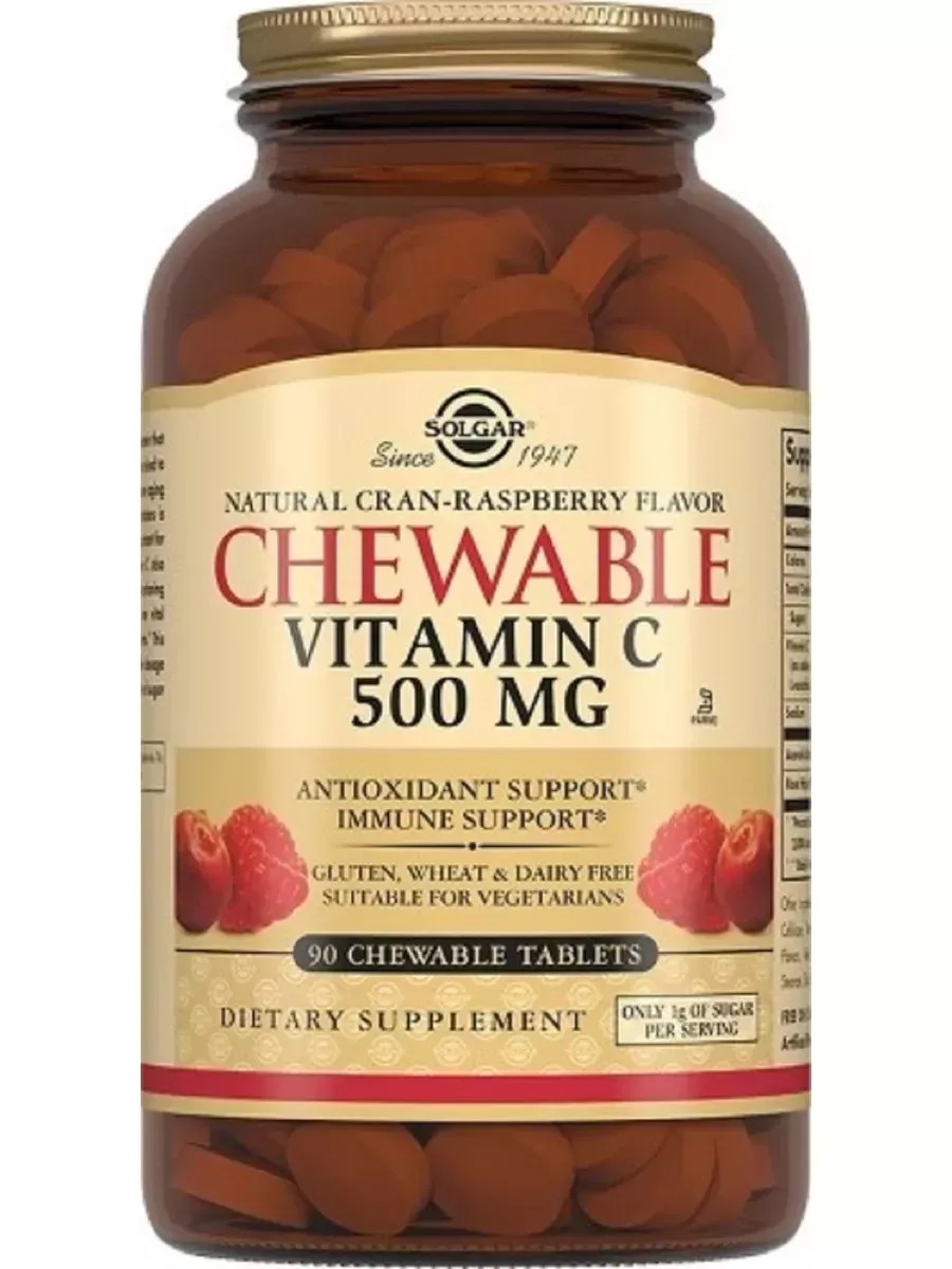 Solgar Vitamin C is a dietary supplement containing 90 raspberry-flavored chewable tablets. Each tablet contains 500 mg of vitamin C, a powerful antioxidant essential for strengthening the immune system, maintaining healthy skin and blood vessels, and helping fight and recover from colds. The chewable tablets are easy to take and can be taken without water anywhere and at any time of day. Solgar Vitamin C is an excellent solution for those committed to a healthy lifestyle and taking care of their health.