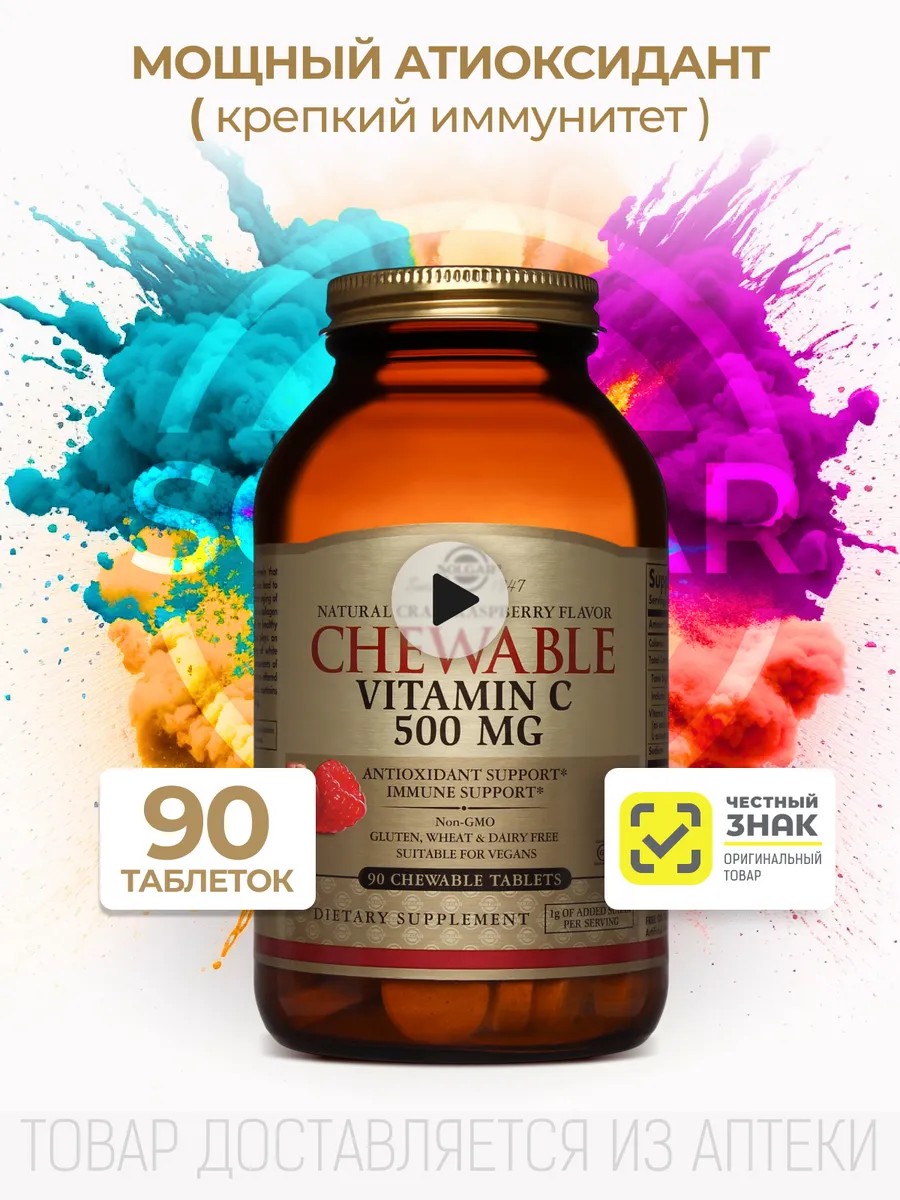 SOLGAR Солгар Витамин С,со вкусом малины,500 мг 90 таб
