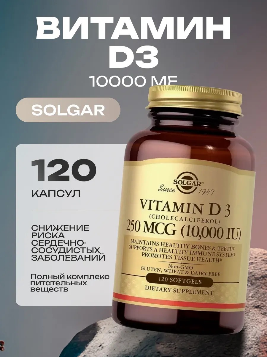 Витамин D3 250 мкг (10 000 МЕ) – 120 капсул – это высокоэффективная добавка для восполнения дефицита витамина D, укрепления иммунитета, костей и зубов, а также улучшения общего самочувствия. Каждая капсула содержит оптимальную дозировку 250 мкг (10 000 МЕ) витамина D3, который способствует лучшему усвоению кальция и фосфора, поддерживает здоровье костной ткани, снижает риск остеопороза, укрепляет иммунную систему и помогает бороться с усталостью и сезонными перепадами настроения. Удобная схема приема – всего 1 капсула в день – обеспечивает длительный эффект, а упаковки из 120 капсул хватит на 4 месяца регулярного применения. Препарат изготовлен из качественного сырья, не содержит ГМО, искусственных красителей и консервантов, что делает его безопасным для здоровья. Рекомендуется взрослым в качестве дополнительного источника витамина D3 для поддержания жизненного тонуса и профилактики гиповитаминоза. Перед применением проконсультируйтесь со специалистом.