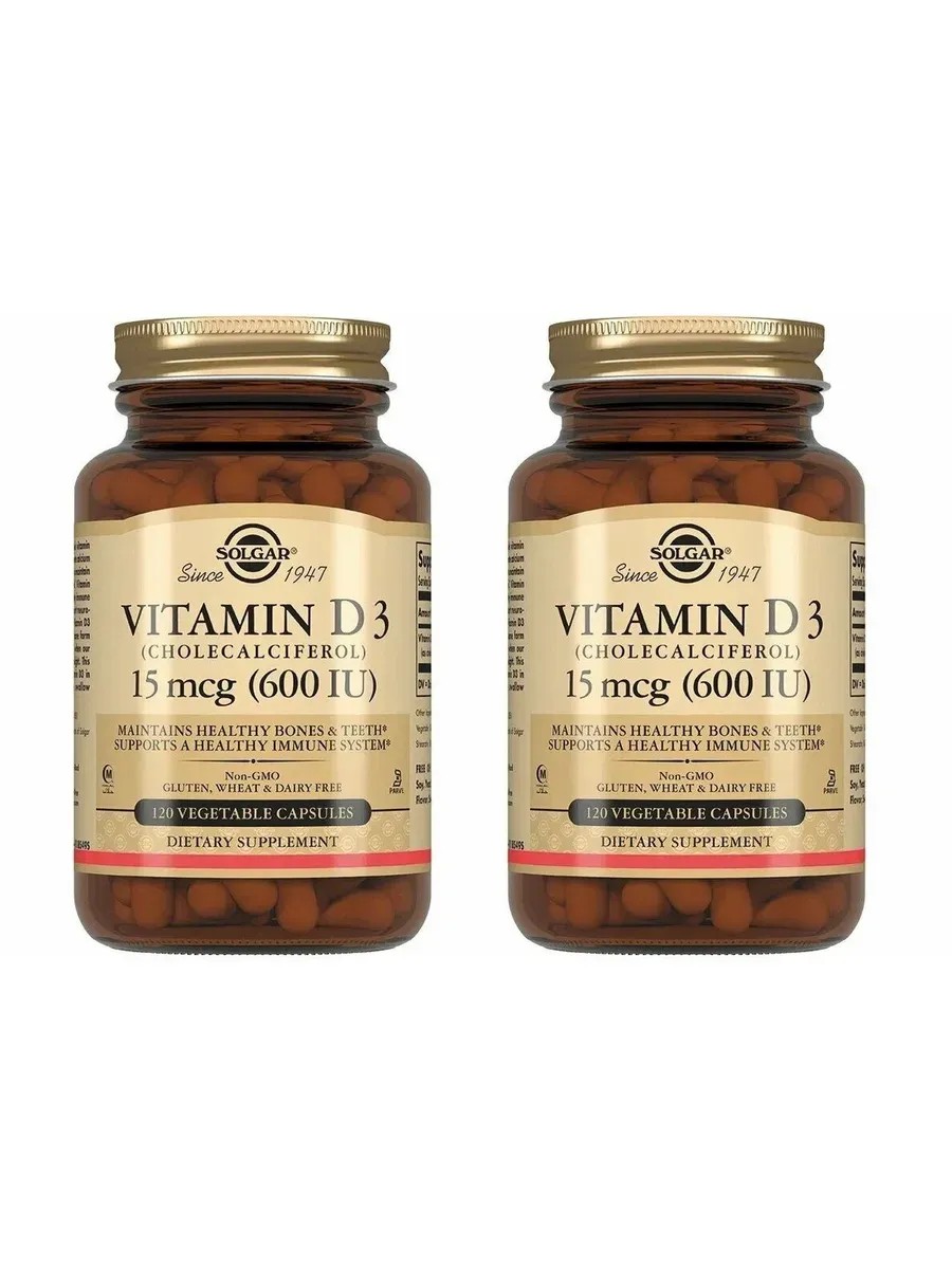 SOLGAR Витамин D3 600 ME, 120 капсул (240 мг) х 2 уп