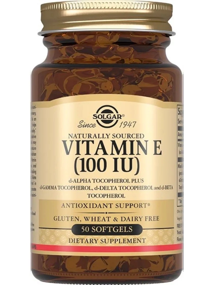 VITAMIN E 100 IU (Vitamin E 100 IU Soft gels) - A dietary supplement (BAA) - contains natural vitamin E in the form of d-alpha tocopherol, as well as a mixture of tocopherol isomers (d-beta, d-delta, d-gamma), which enhance the antioxidant properties of vitamin E.