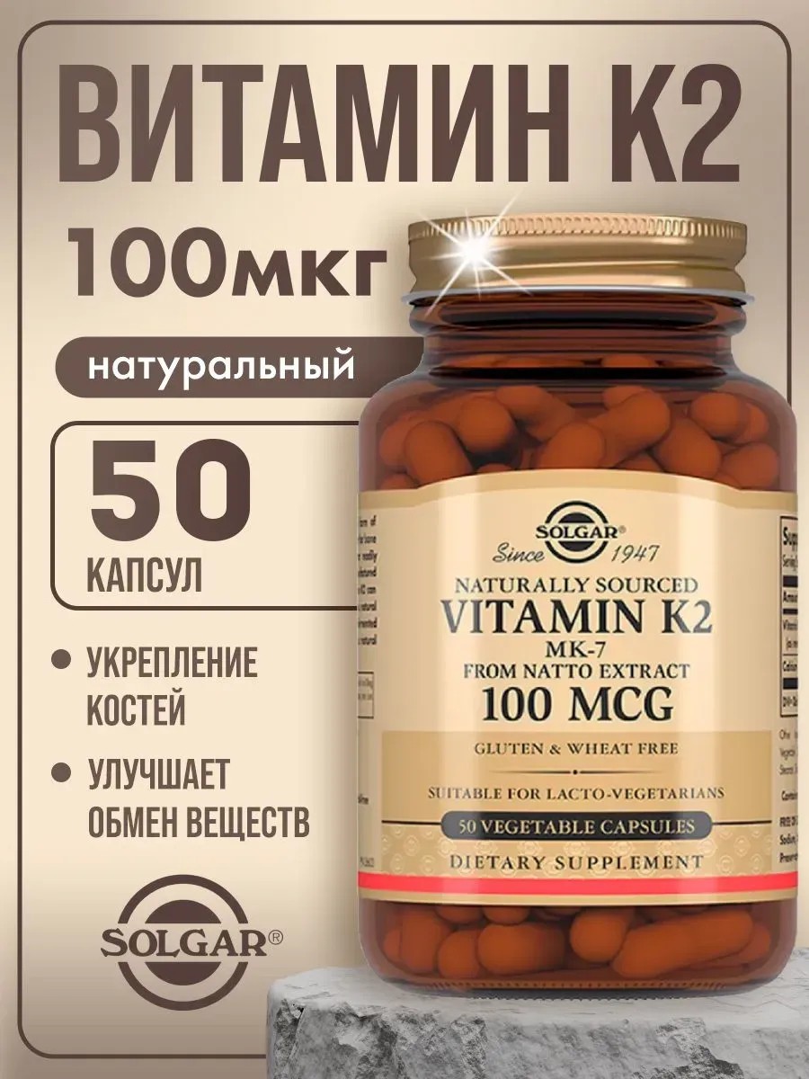 Рекомендуется в качестве дополнительного источника витамина К2, содержащей кальций. «Натуральный витамин К2 (менахинон 7) 100 мкг» от Солгар – это активная форма витамина К2 в виде менахинона с высоким уровнем биодоступности в оптимальной дозировке 100 мкг для восполнения суточной потребности организма. Витамин К2 играет важную роль в обмене веществ, в укреплении костей и соединительной ткани, в работе почек, участвует в усвоении кальция и обеспечивает взаимодействие кальция и витамина D.