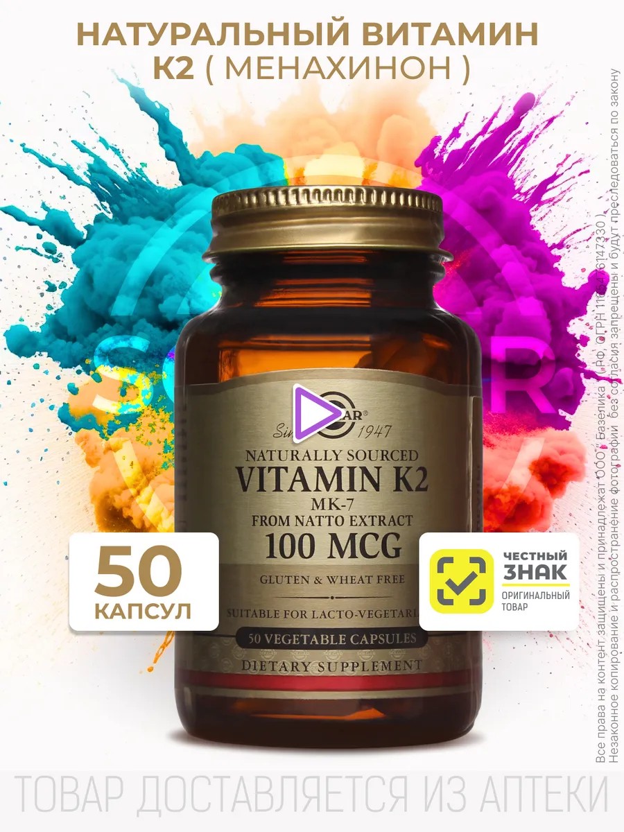 SOLGAR Солгар Витамин К2 менахинон 100 мкг, 50 шт.