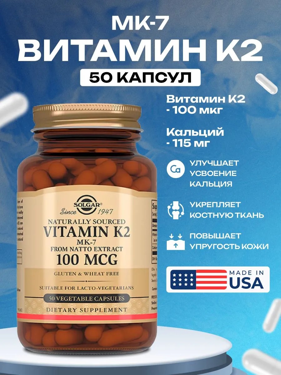 | Composition | Vitamin K2 (menaquinone 7) - 100 mcg, Calcium - 115 mg |