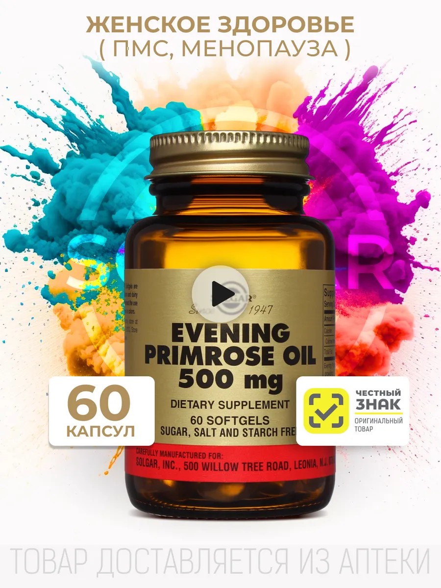 | Комплектация | Солгар масло примулы вечерней 500 мг 60 шт. капсулы массой 718 мг |