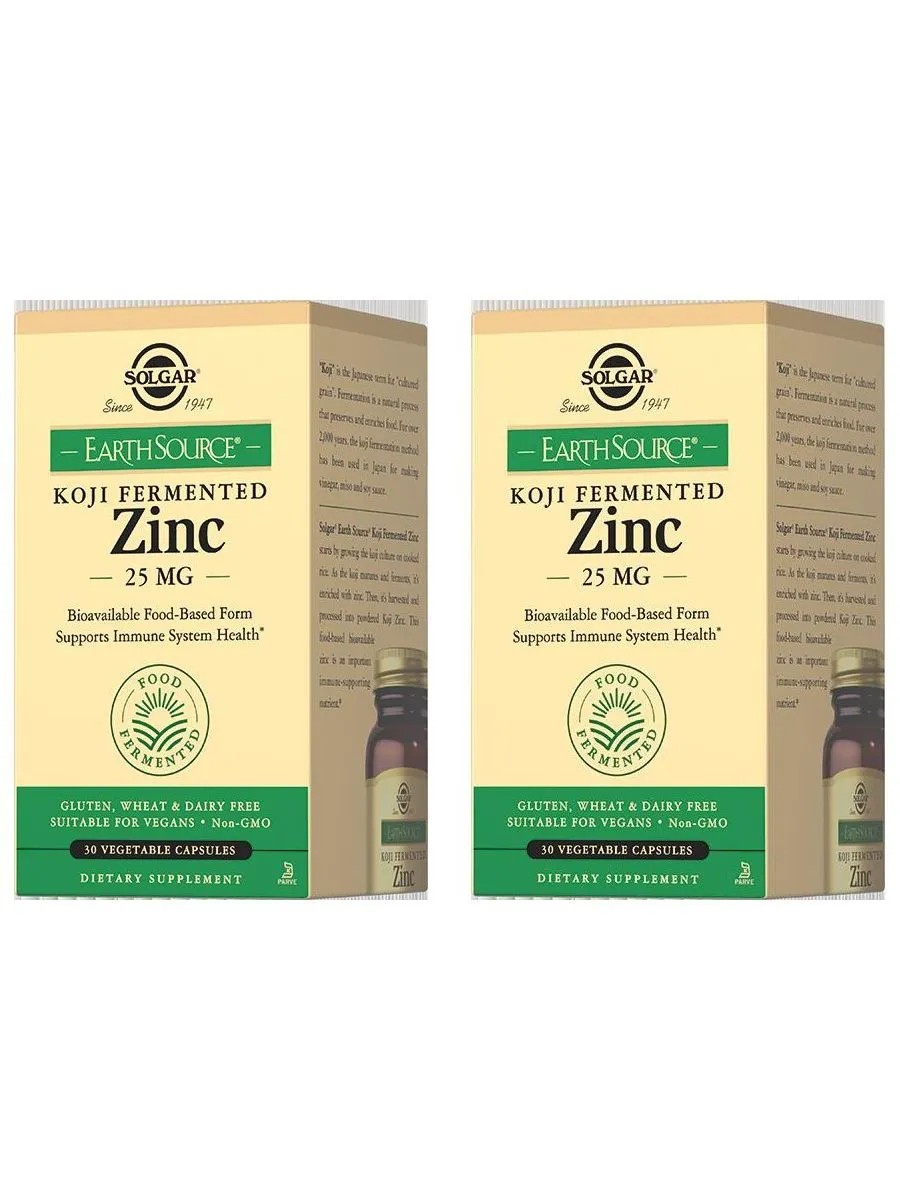 SOLGAR цинк 25мг в ферментированной культуре коджи n30 по 80 - 2шт