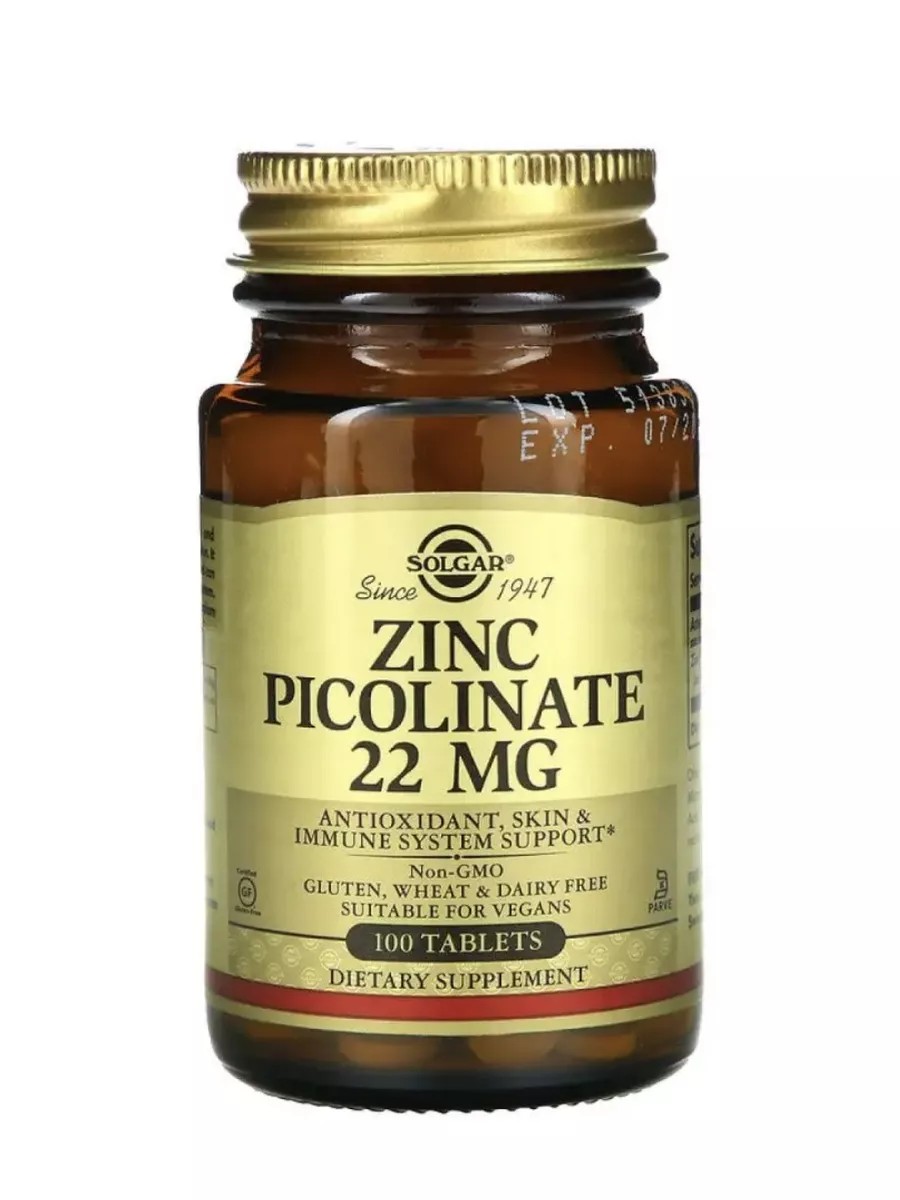 Zinc picolinate is absorbed even in conditions of low acidity, making it suitable for people who have begun to experience decreased acidity (usually after age 40). Recommended intake: 1 tablet contains: Zinc picolinate 22 mg. Dicalcium phosphate (calcium - 20 mg) 93.4 mg. Directions and dosage: Adults: 1 tablet daily with meals for 1 month. Repeat treatment as directed by a physician.