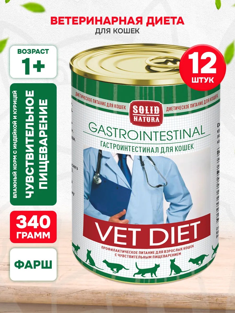 Solid Natura Vet Gastrointestinal - влажный диетический кошачий корм, предназначенный для взрослых кошек всех пород с чувствительным пищеварением.