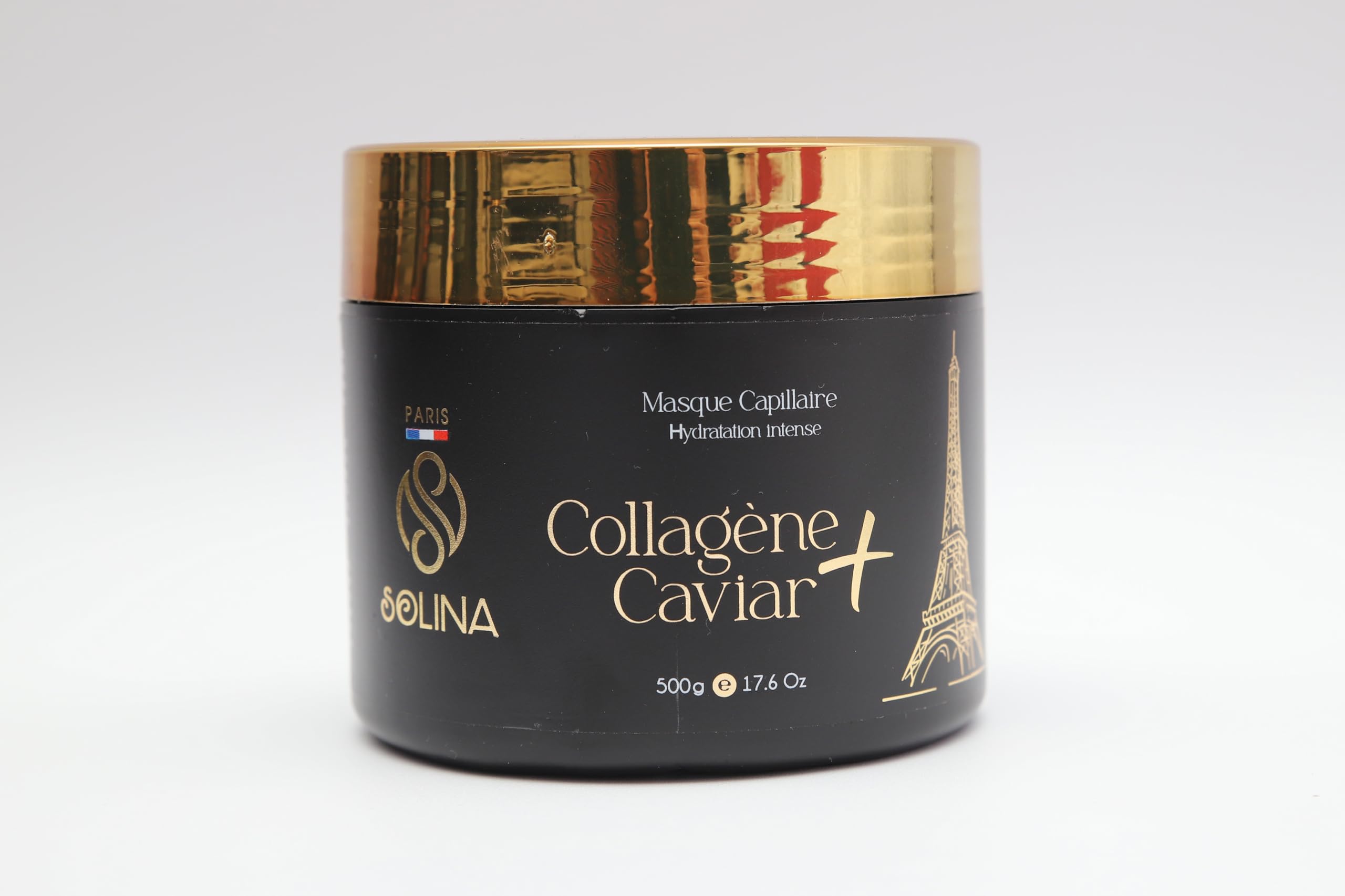 : Discover the Solina Hair Mask, a luxurious 500g treatment that will transform your hair. Enriched with collagen and caviar, this mask provides intense hydration and deep repair for all hair types, especially dry, treated, or damaged hair. Its premium formula, combining keratin, argan oil, and monoi, restores the hair's protein mass while providing exceptional nourishment and shine. Ideal for repairing hair damaged by chemical treatments such as coloring or straightening, this mask rebuilds the hair fiber from within. Treat your hair to a professional treatment that leaves it soft, vibrant, and protected. For best results, apply generously to washed and towel-dried hair, leave on, then rinse thoroughly. Ingredients Amodimethicone, Aqua (water), Argania Spinosa Kernel Oil (argan oil), Behenamidopropyl Dimethylamine, Behentrimonium Chloride, Behentrimonium Methosulfate, Ceteareth-20, Cetearyl Alcohol, Cetostearyl Alcohol, Cetrimonium Chloride, Butyrospermum Parkii Butter (shea butter), Cocos Nucifera Oil (coconut oil), Disodium EDTA, Glycerin, Hydrolyzed Keratin, Lactic Acid, Myristyl Alcohol, Parfum, Phenoxyethanol, Potassium Sorbate, Sodium Benzoate, Trideceth-12. Safety Warning: For external use only. Avoid contact with eyes. If contact occurs, rinse immediately with water. Do not ingest. Keep out of reach of children. store in a cool, dry place. Perform a sensitivity test before first use. See more