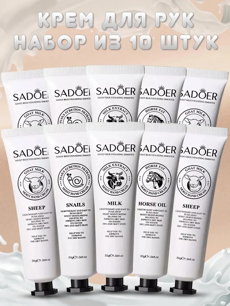 Набор крема для рук из 10 штук Sadoer представляет собой идеальное решение для тех, кто стремится к восстановлению и уходу за кожей рук. Этот набор крема для рук предназначен для использования в любое время суток, благодаря его универсальной формуле, которая подходит как для дневного, так и для ночного ухода. Подарочный набор кремов это идеальный презент для любимых мамы, жены, тещи, свекрови, сестры, для подруги, коллеги на 8 марта, 14 февраля, день рождения - ДР или любой другой праздник.