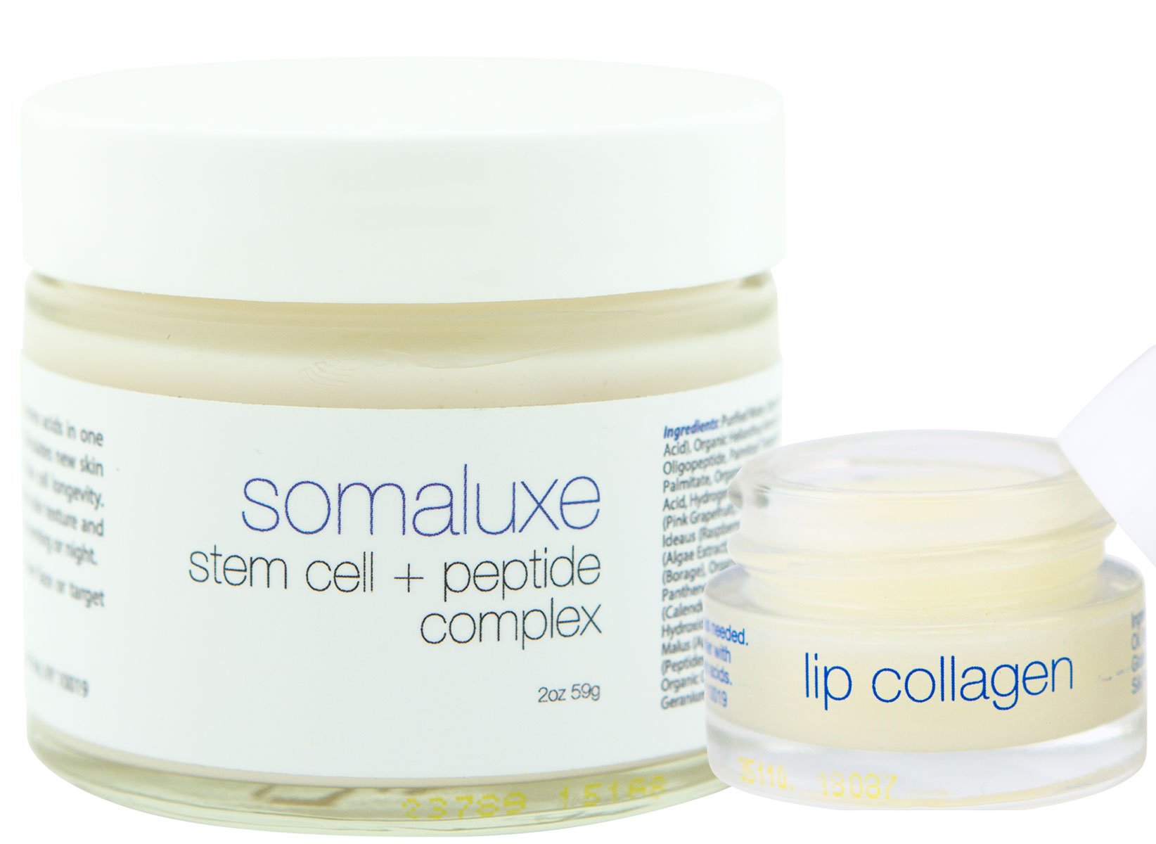 Collagen + Stem Cell Dream Duo: (1) Somaluxe Stem Cell Moisturizer + (1) Somaluxe Lip Collagen This proprietary Introducing the Collagen + Stem Cell Dream Duo, a luxurious skincare experience that combines the potent powers of plant stem cells, Vitamin C, and collagen peptides to lavish your skin with the utmost indulgence. This proprietary fusion of ingredients is designed to not only reduce the appearance of fine lines and wrinkles, but also to balance skin tone and provide a plumping effect for lips that look and feel fuller. The Somaluxe Stem Cell Moisturizer is a sumptuous cream that utilizes plant stem cells, which are the building blocks of new skin cells, to repair damaged skin while protecting it from future damage. Vitamin C, a powerful antioxidant, works to improve skin tone and texture, reduce hyperpigmentation, and boost collagen production. Collagen peptides, small fragments of collagen that are easily absorbed by the skin, help to plump and firm the skin, reducing the appearance of wrinkles and fine lines. The Somaluxe Lip Collagen, infused with collagen peptides, provides a plumping effect that leaves lips looking and feeling fuller. Imagine waking up to radiant, youthful skin every morning, with fine lines and wrinkles reduced, skin looking firmer, and a balanced skin tone. Imagine having lips that are plump and full of life, thanks to the hydrating and plumping properties of collagen peptides. This duo is not just a skincare product, it's a luxurious experience that will leave your skin looking and feeling its best. Treat yourself to the ultimate indulgence and pamper your skin with the Collagen + Stem Cell Dream Duo. Order yours today and discover the difference for yourself. Your skin will thank you.Safe and effective for all skin types; apply every morning and / or evening over freshly cleansed face and neck. Vitamin C boosts collagen production balancing complexion while fighting free radicals to keep skin looking youthful and plump. Vitamin C is a great option. It's a. Plant stem cells are the building blocks of new skin cells as they repair and regenerate damaged skin, while also protecting against future damage. Plumping effect helps to reduce the appearance of fine lines and wrinkles, leaving your face and lips looking younger and smoother. It also increases the volume of your lips, making them look fuller and more pouty. Reverse the signs of aging with plant stem cells and collagen peptides. Our moisturizer reduces fine lines and wrinkles, firms skin, and balances skin tone.