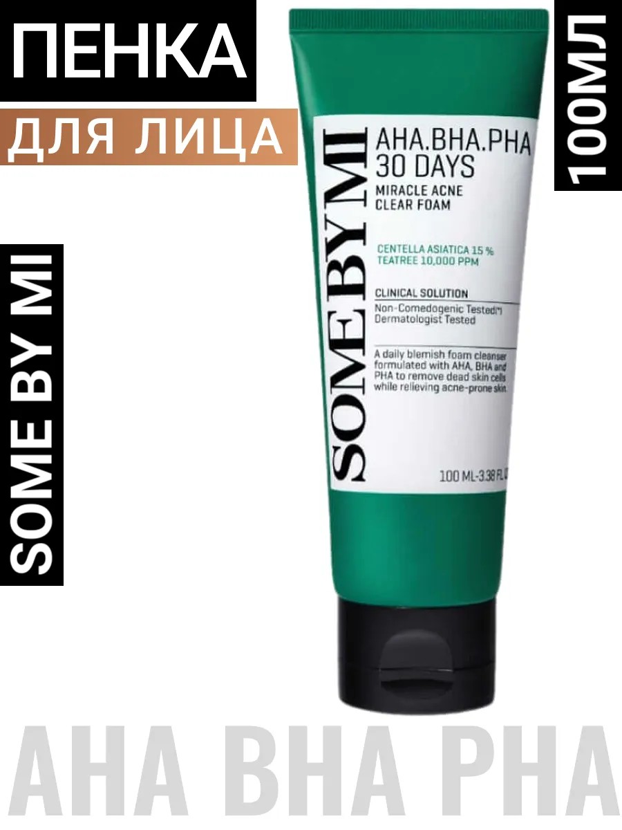 SOME BY MI AHA·BHA·PHA 30 DAYS MIRACLE ACNE CLEAR FOAM Очищающая пенка корейская для умывания с кислотами 100мл. Этот инновационный продукт создан специально для ежедневного ухода и очищения кожи, делая её здоровой и сияющей. В пенке гармонично сочетаются три мощных кислоты: AHA, BHA и PHA, каждая из которых обладает уникальными свойствами, которые подарят вашей коже истинное преображение.
