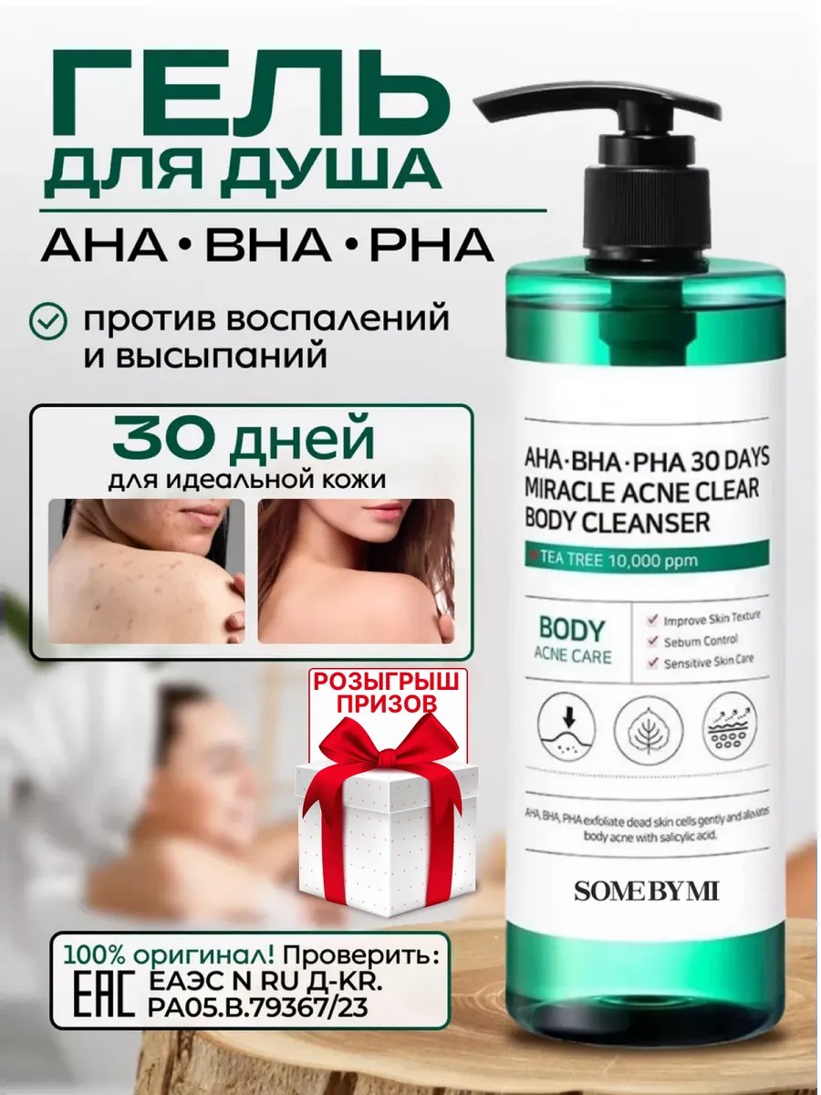 Очищающий гель для душа с кислотами SOME BY MI отлично подходит для склонной к высыпаниям с комплексом кислот и центеллой азиатской, эффективно поможет отшелушить и удалить с поверхности кожи излишки себума, ороговевшие клетки и другие загрязнения. Гель с кислотами AHA BHA PHA подарит коже чувство комфорта, мягко полирует, делая её покров шелковистым и мягким. Средство отлично борется с несовершенствами кожи, поможет регулировать выработку себума. Гель для тела хорошо пенится и не вызывает ощущения сухости или стянутости кожи после умывания.