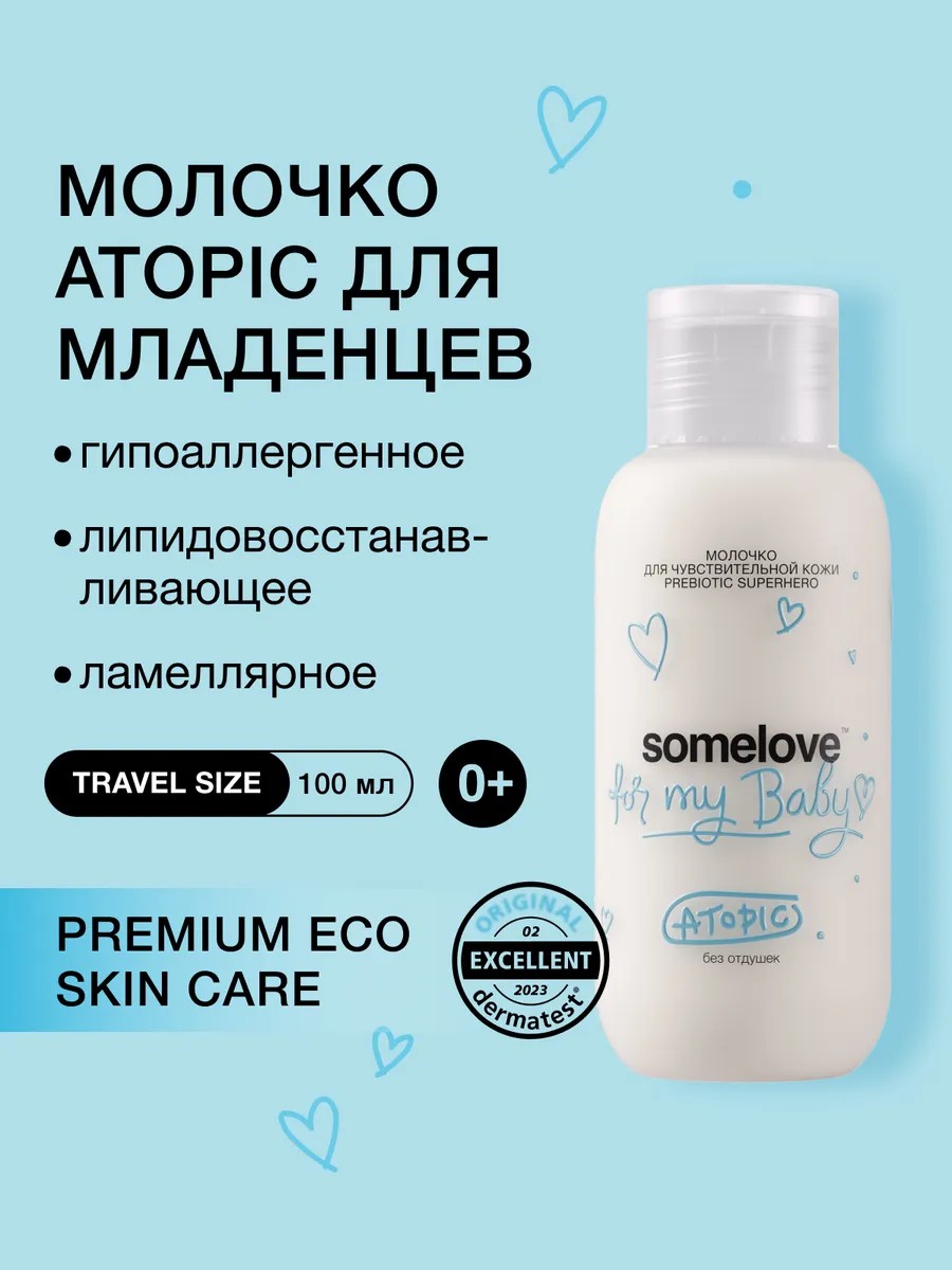 Увлажняющее молочко Prebiotic superhero atopic Somelove - уходовая формула, разработанная специально для детей и новорожденных с чувствительной кожей, страдающих от атопического дерматита, псориаза или экземы. Комплексное средство без запаха содержит эмоленты и органические сок алоэ, растительные и фруктовые экстракты и натуральное масло сладкого миндаля, которые оказывают увлажняющее, успокаивающее и питательное действие. Несмываемый защитный жидкий состав с токоферолом, глицерином и пчелиным воском не содержит эфирных масел и парфюма. Оно подойдет для младенцев и ребенка со смешанной или нормальной, тонкой и обезвоженной или склонной к шелушению нежной дермы. Его могут использовать подростки, женщины и мужчины или молодые девушки и парни для интенсивного восстановления эпидермиса после мороза. Гипоаллергенное молочко с комплексом масел (кокосовое и рапсового, жожоба и других) мягко восстанавливает ph - баланс и очень хорошо увлажняет тело и личико, снимает раздражения и возвращая эпидермису здоровую гладкость и мягкость. Средство из аптечной линейки магазина Somelove поможет обеспечить основной профессиональный уход в домашних условиях. Его можно каждый день применять после купания в ванной и душе (душевой). Жидкое молочко борется против сухости и несовершенств и станет основой ежедневного ночного или дневного ухода за детским (от 0 плюс лет) и взрослым телом. Это идеальный выбор для быстрого обогащения эпидермиса питательными веществами и водой. Фирменная упаковка белого цвета в удобном формате имеет объем 200 мл. Это правильный выбор для здоровья и красоты вашего малыша! Формула с успокаивающим эффектом станет источником полезных веществ и укрепит защитный эпидермальный барьер. Оно предполагает простой способ нанесения. Нужно лишь выдавить немного средства и равномерно его распределить. У нас есть акции и распродажи, вы можете купить наши товары в подарок со скидкой!
