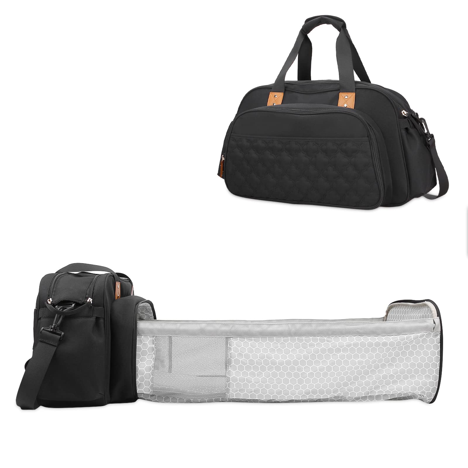 Product Information: - The bag can be used as both a diaper bag and a crib, with extra shoulder strap for dad and mom to use both as a tote bag and a shoulder bag or messenger bag. - Large capacity with multiple useful pockets, well-organized structure and wide opening design makes it easy to find the necessities of your little one. - The shoulder strap is adjustable from 32CM to 60CM according to your need, also it is designed with a soft shoulder pad so that you can carry it comfortably. - Velcro design and the interior key pacifier fob make the changing bag more practical. Reinforced leather seams in easy-grab top handle make it more durable. - With a stylish appearance and a neutral design, the diaper shoulder bag is a nice choice for both man and woman. An ideal baby shower gift for new moms and dads. Technology: We specialize in producing more than 30 years, the product quality is guaranteed. We believe that good materials, stylish design and first-class technology will bring you a better product experience. About SONARIN: SONARIN company focused on research and development of maternal and child products,Committed to providing baby protection and care. If you have any questions, please leave a message, we will reply to you within 24 hours and provide the best service. If you are not satisfied, please contact us, we will solve the problem until you are satisfied. Thank you for coming our store, please enjoy shopping!After-sales Service: We are committed to each customer to provide dedicated service, and bear the responsibility of each product quality. Our goal is to win the customer's satisfaction with the best products and services. If you have any questions or suggestions, please contact us and we will reply as soon as possible. Multiple Carry Methods: Comes with an padded adjustable shoulder strap, the nappy bag can be used as a shoulder bag or cross-body bag. It can be used as a handbag, messenger bag, maternity bag, travel bag, weekend bag, etc for mom and dad. Suitable for many occasions such as walking, shopping and traveling with baby, brings great safety and convenience in outdoor life. Large Capacity: The diaper bag size is 51 13 27CM (20.1 5.1 10.6 inches), large enough to hold all the items that you and your baby need for daily travel. The baby nappy bag includes a main compartment with large storage and several small inner pockets, two side pockets for water bottles and tissues, a back pocket to hold changing pad and other items. Diaper Bag with Crib: Designed with an extra folding crib and a washable changing mat, just unzip the front pocket, put into the extendable support rods and lay the changing mat, a comfortable and safe bassinet is created for your baby to sleep or change diapers. The unfold baby crib size is 70 39 19CM, enough for your baby to have a rest comfortably. Waterproof Durable: The baby changing bag is made of high quality waterproof polyester fabric, both the interior and exterior fabric are water-resistant and easy to wipe clean. Comes with sturdy zippers and well-done stitching, tear resistant and durable enough to sustain heavy weight.